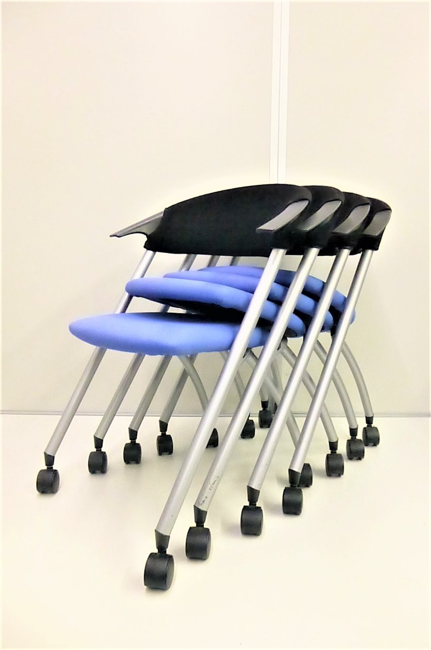 【KS】【水平に重ねられるタイプ】スタック可能!整理整頓できるネスティングチェア!爽やかブルー!- 茨城南店