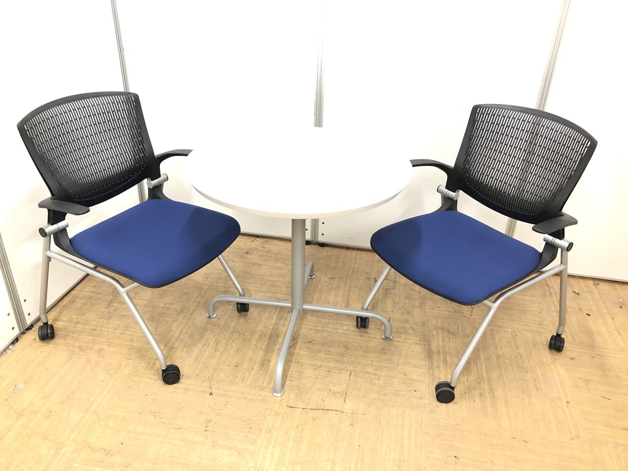 【セットでお得にお買い物!】イトーキ丸テーブルとオカムラチェア2脚のリフレッシュセット!- 名古屋本店