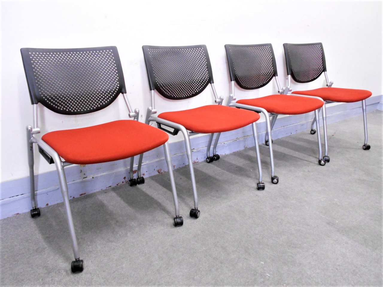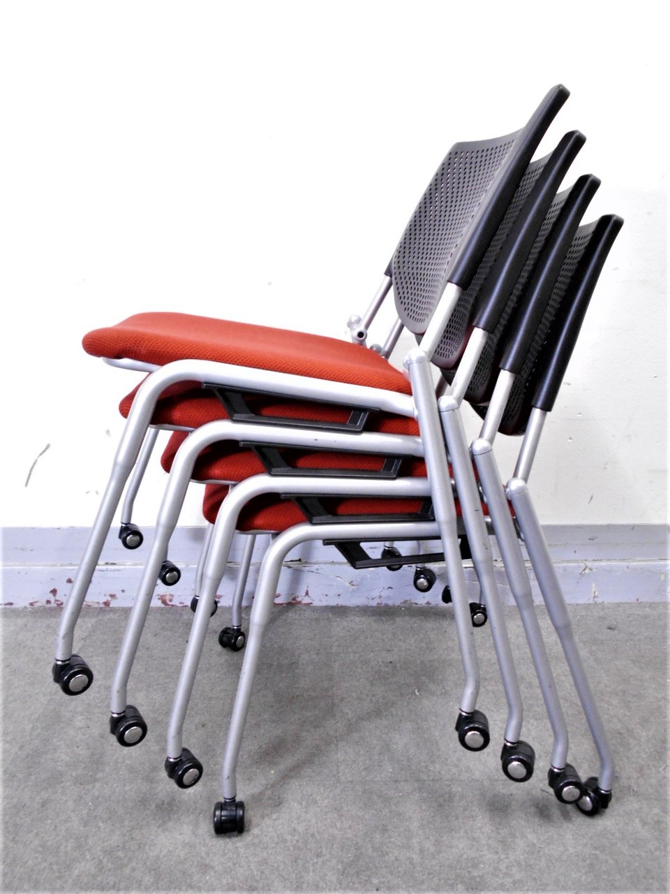 【KS】[会議用椅子][定番]ミーティングチェア キャスター付き 4脚まで重ねて収納可能な便利なオフィス家具!【在庫入替】サーキュラーバリューCO2削減量の算出について