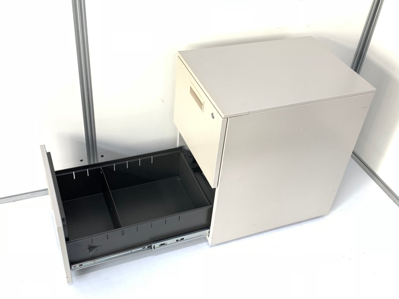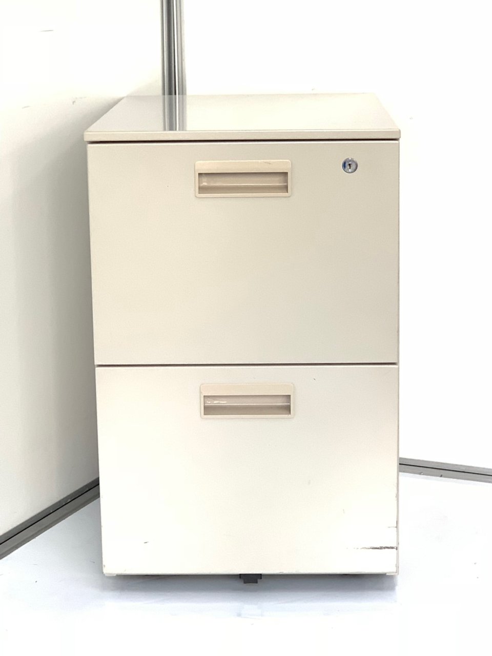 - 一部不具合ありその脇机・ワゴンの本来の効用を果たすための機能以外の一部が使用不可な状態。(例、引出が開閉しづらい、 キャスターロック機能使用不可、ラッチ不良 等がある。)