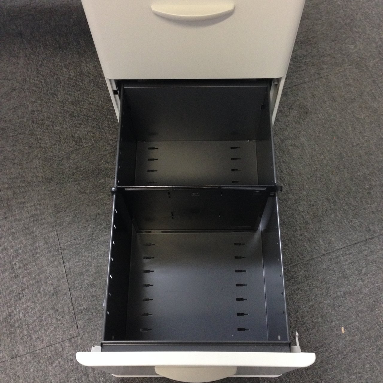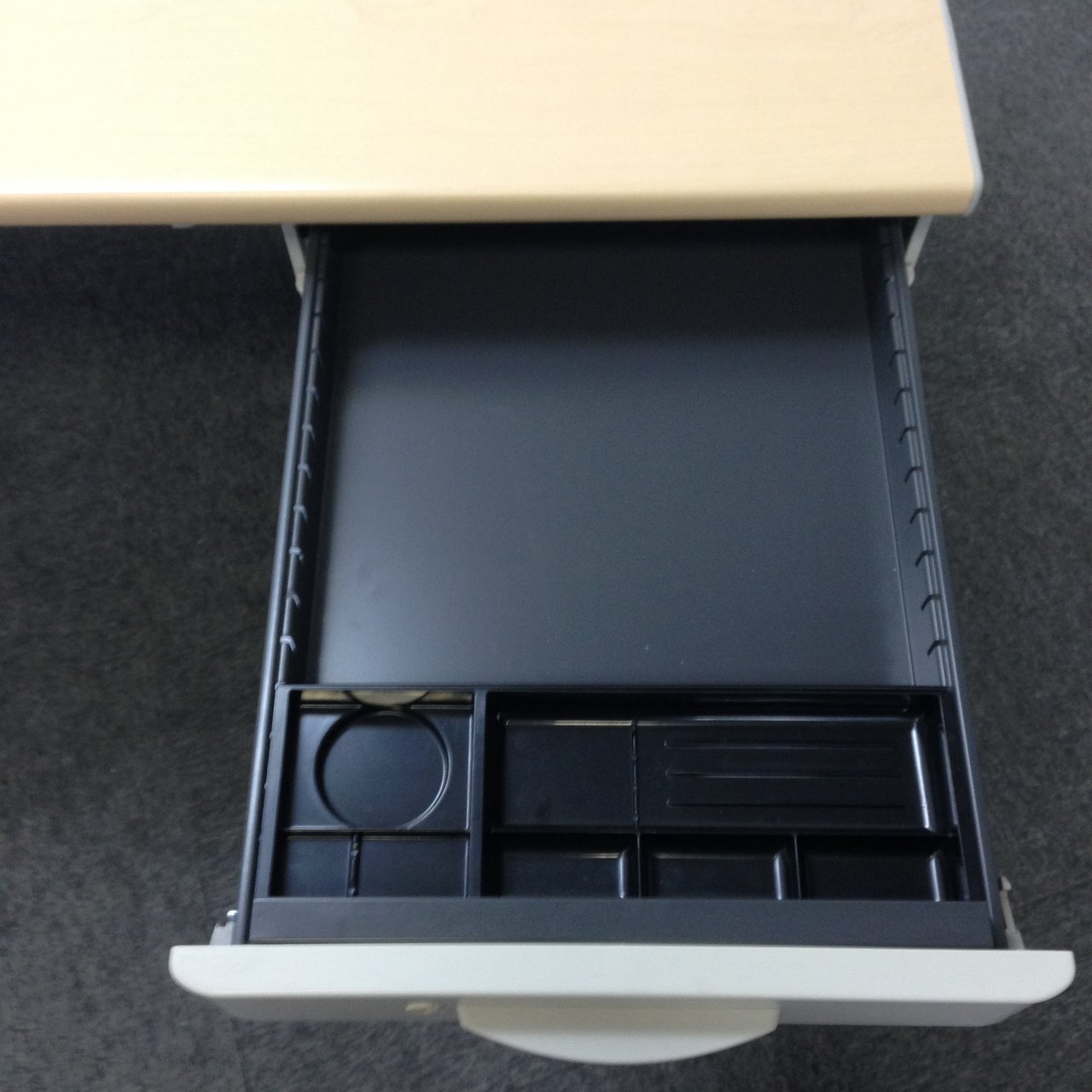 また、収納力も抜群で天板下の引き出しはもちろんの事、袖に3段の収納が可能。