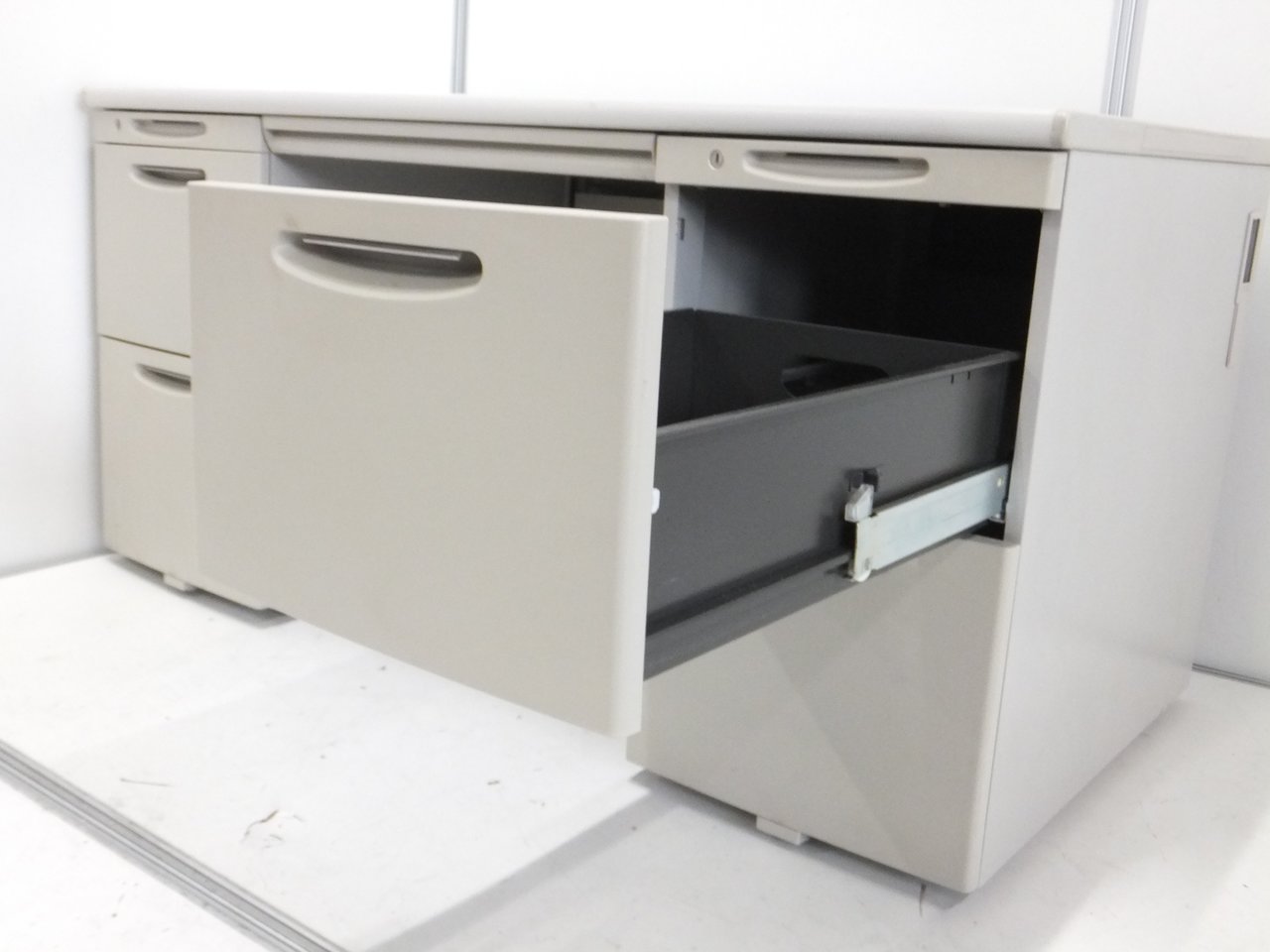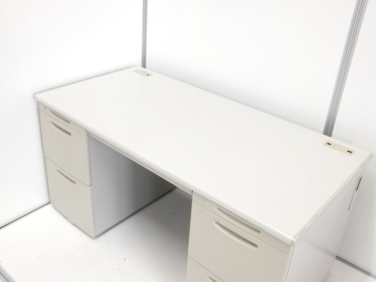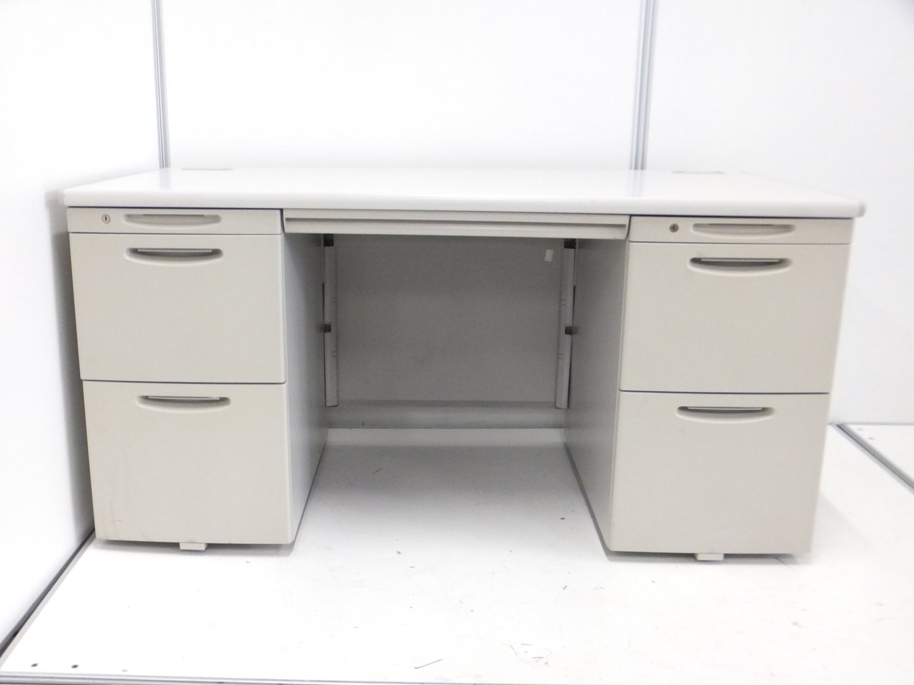 上長席・役員向けサイズ オカムラ SDデスクシステム 両袖机 定番のW1400サイズ 汚れの目立ちにくいニューグレー 鍵付き シリンダー錠