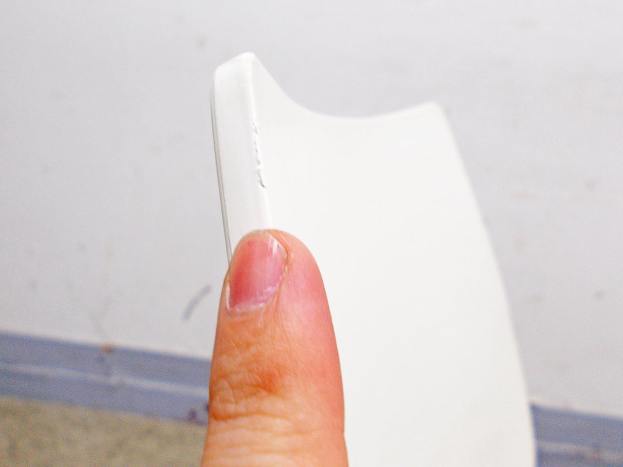 - かなり強い濃い黄ばみ・変色が商品全体にある。(例、座面・背もたれ、脚部等にある。)
