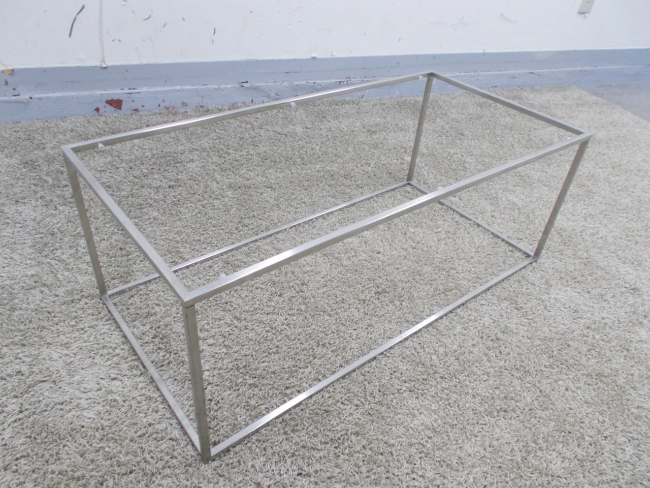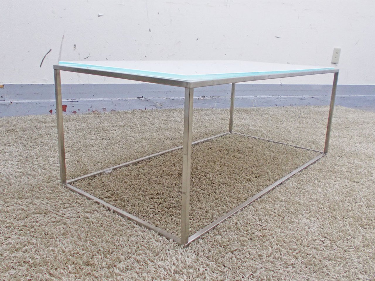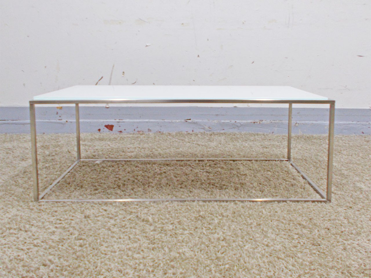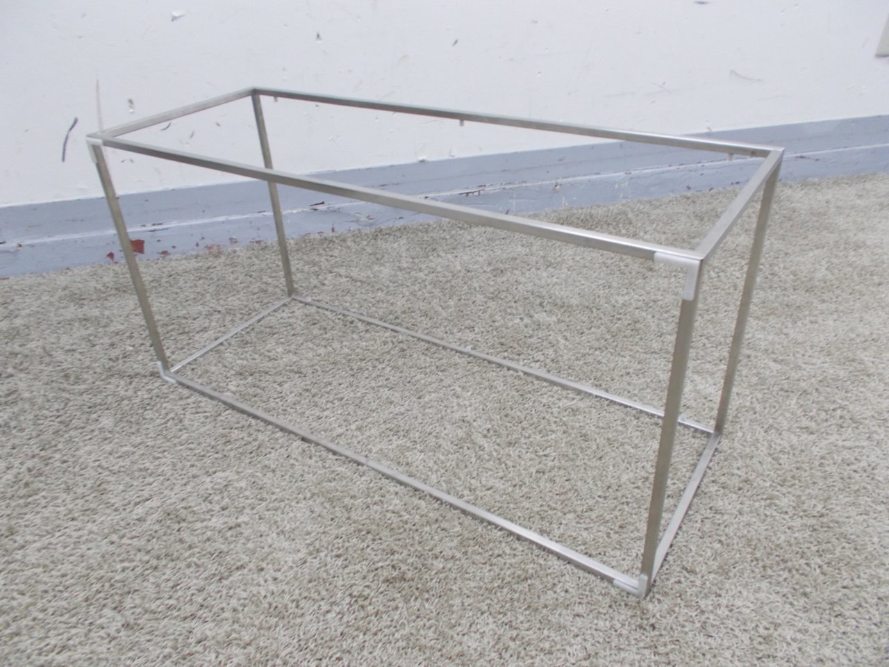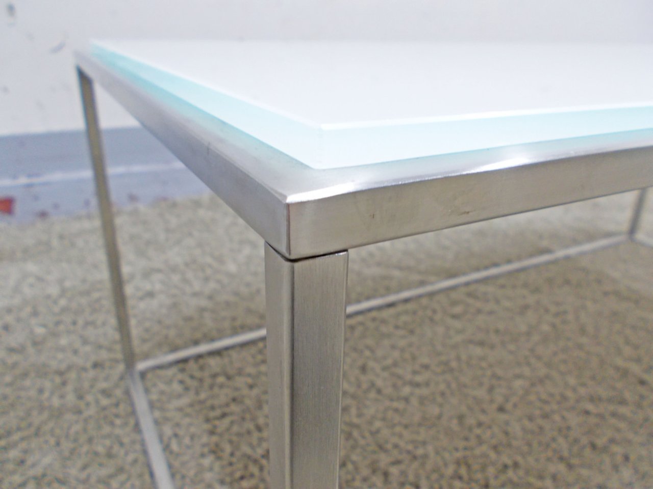 ガラスの天板を細いスティールパイプだけで立ち上げているので、閉塞感が無くすっきりとしたデザインです。