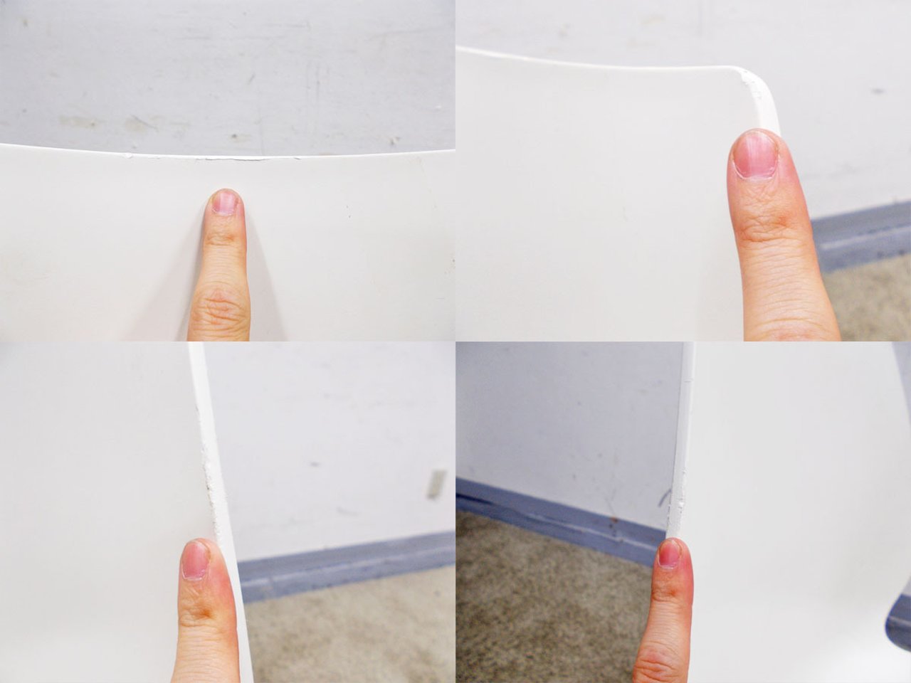 - 目立つ箇所あり傷・破れ・ほつれ・へたり・しわが多数または深い傷・破れ・ほつれ・へたり・しわが一部ある。※座面・背もたれ、シェル、脚部等にある。