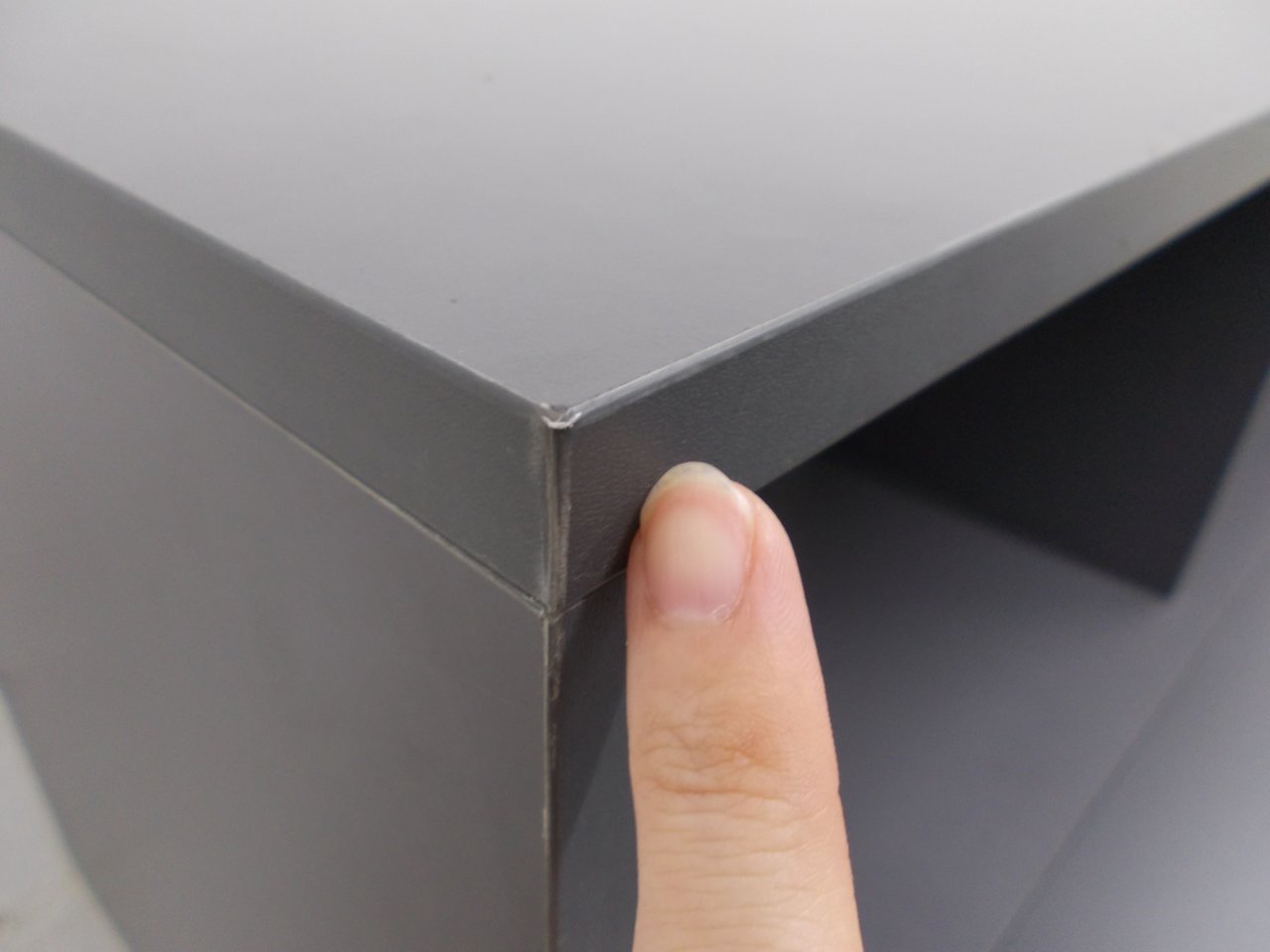 - 目立つ箇所あり傷・凹みが多数、深い傷・凹みが一部ある。(例、天板、幕板、棚板、サイド部分、脚部等にある。)