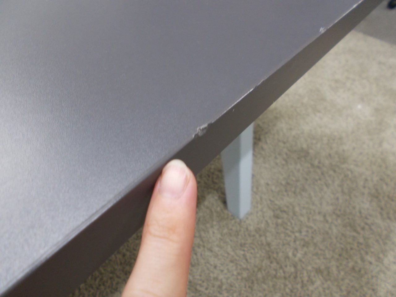 - 壊れている天板歪み、アジャスター無し、キャスター使用不可のようにそのテーブルの本来の効用を果たすための機能に不具合がある。