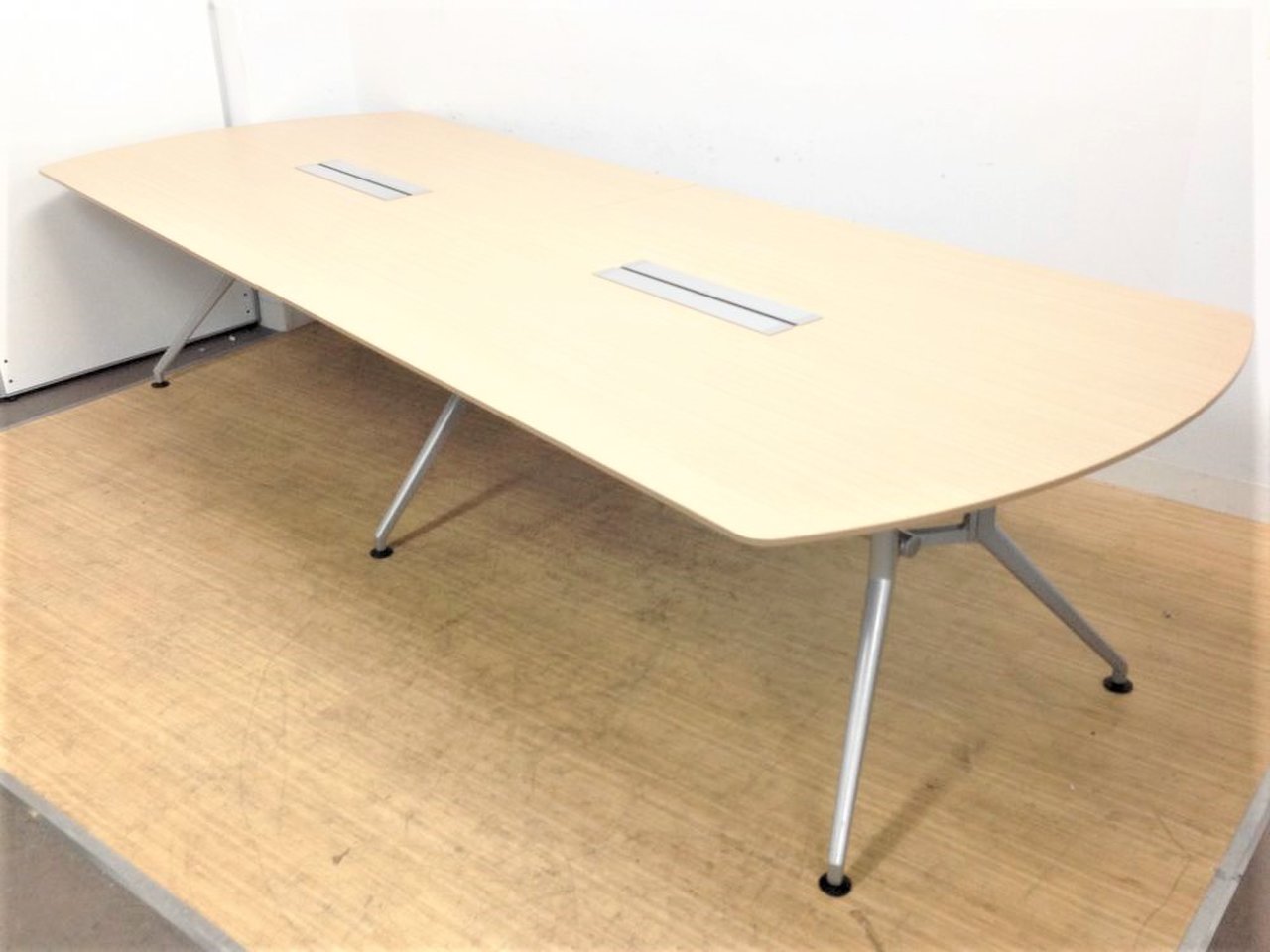 【会議室だけでなく休憩室でも!6~8名様対応・大型テーブル】■イトーキ(ITOKI) DDDシリーズ ミーティングテーブル 会議テーブル 幅2400×奥行900mm ■木目ナチュラル天板 脚シルバー色 オフィスバスターズ東大阪店