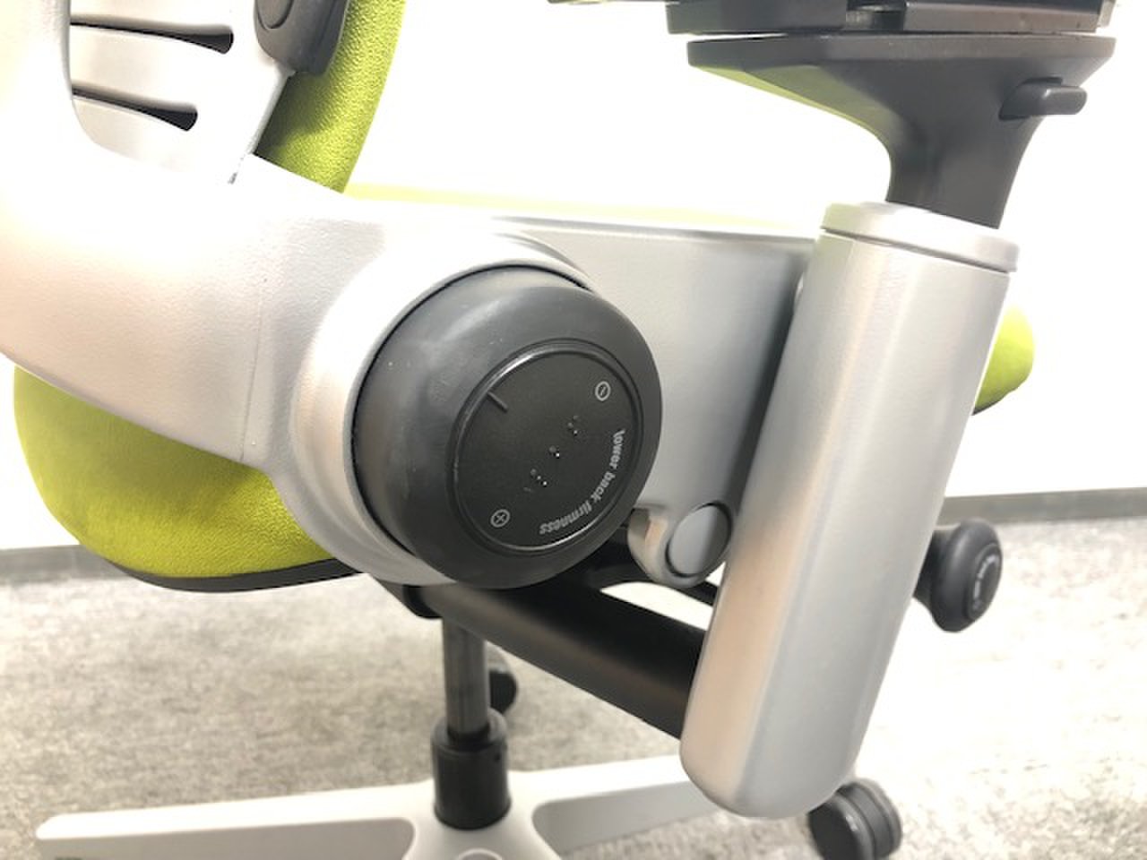 - 脊髄への負荷を軽減します。(もたれとのすき間を埋めて脊髄の自然なカーブをキープします)背もたれの上下独立した調節機構は、リープチェアだけが持つテクノロジーです。
