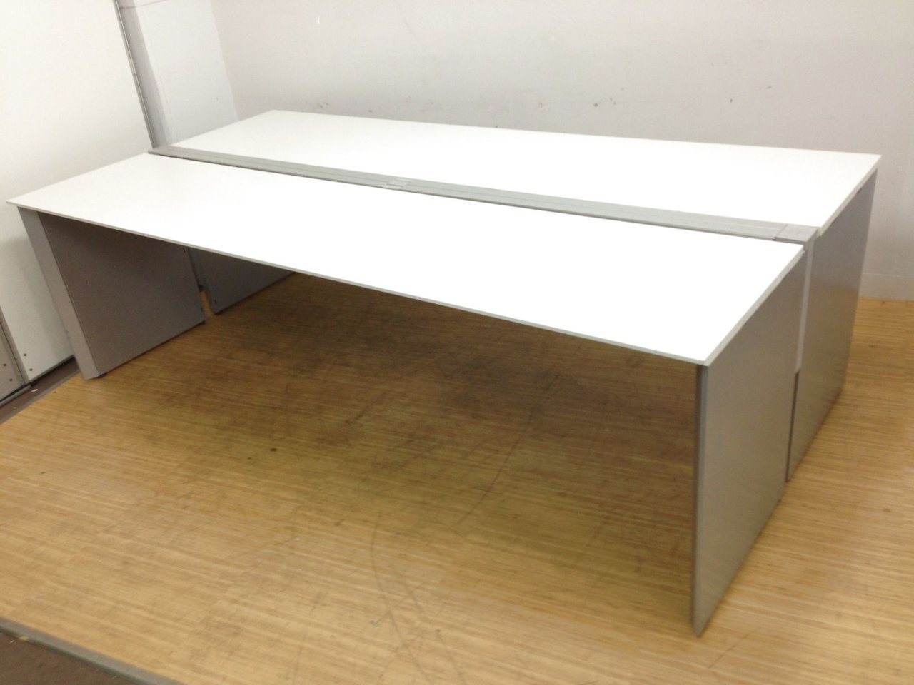 ★白×銀のカラーリングが人気の秘訣!デザイン性に優れたワークデスク入荷!W2400【倉庫在庫品】