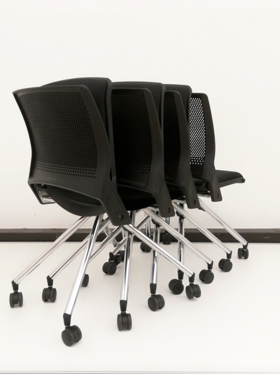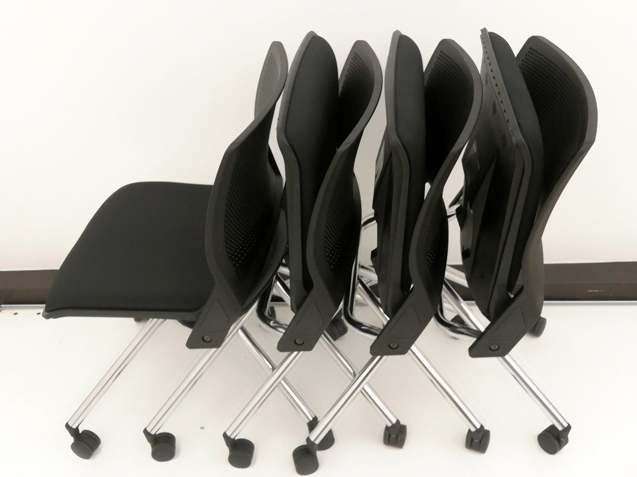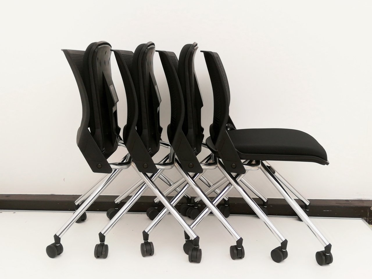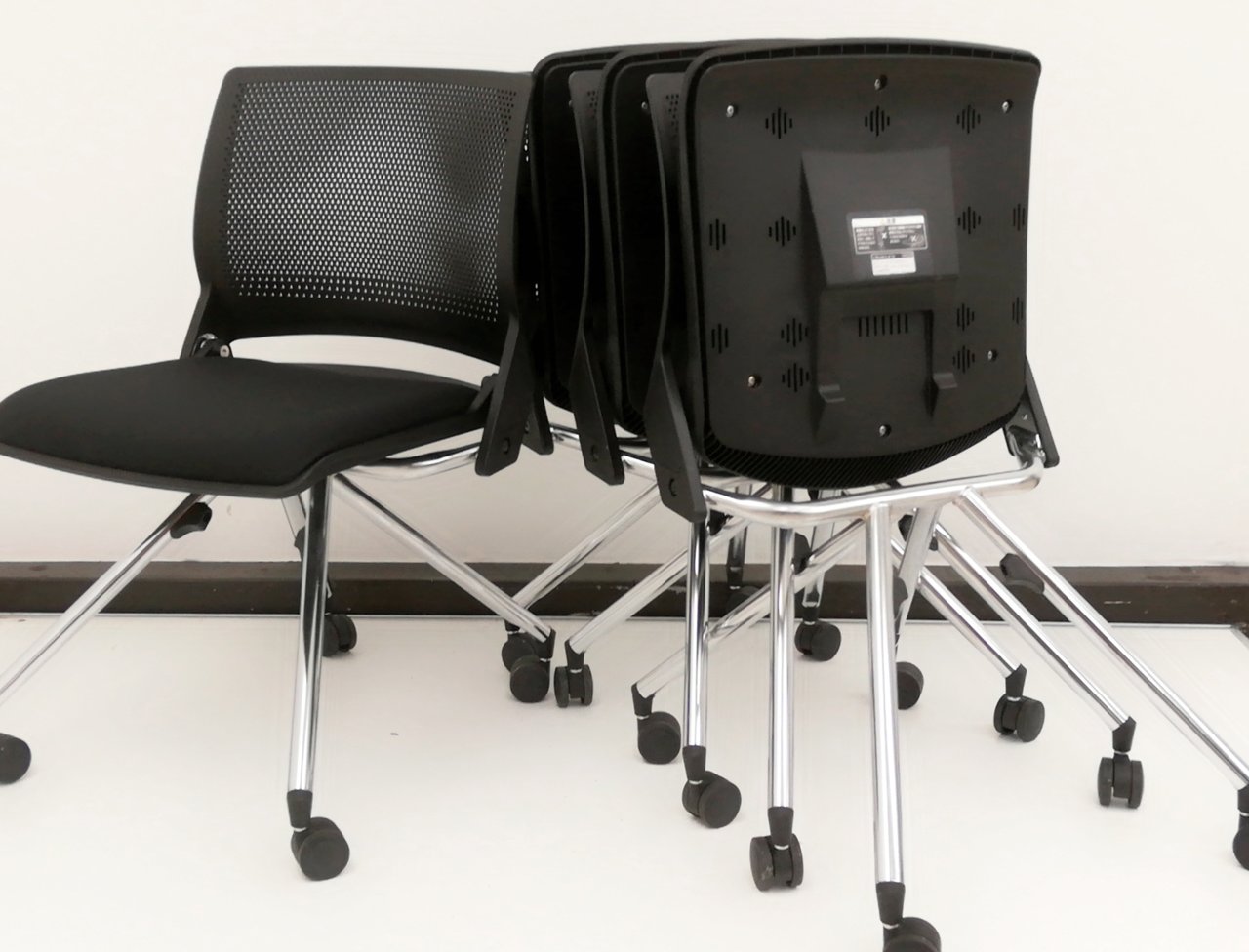 【4脚セット10%オフ!】■ネスティングチェアで迷いならこちらがオススメ! ブラックで場所を選ばない!【ミーティングチェア】- 春日部・越谷店