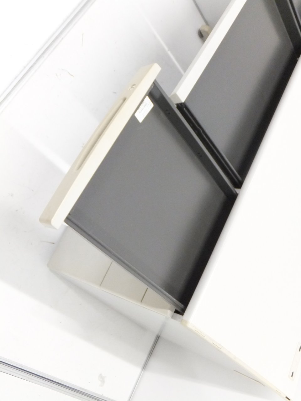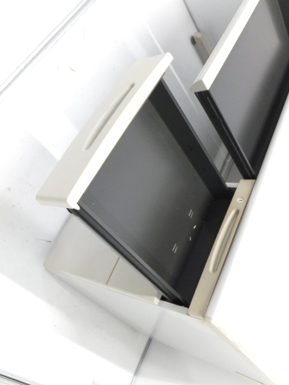 - 袖机のワゴンは、最下段がロング引出しになっており、従来より収納力120%アップ。