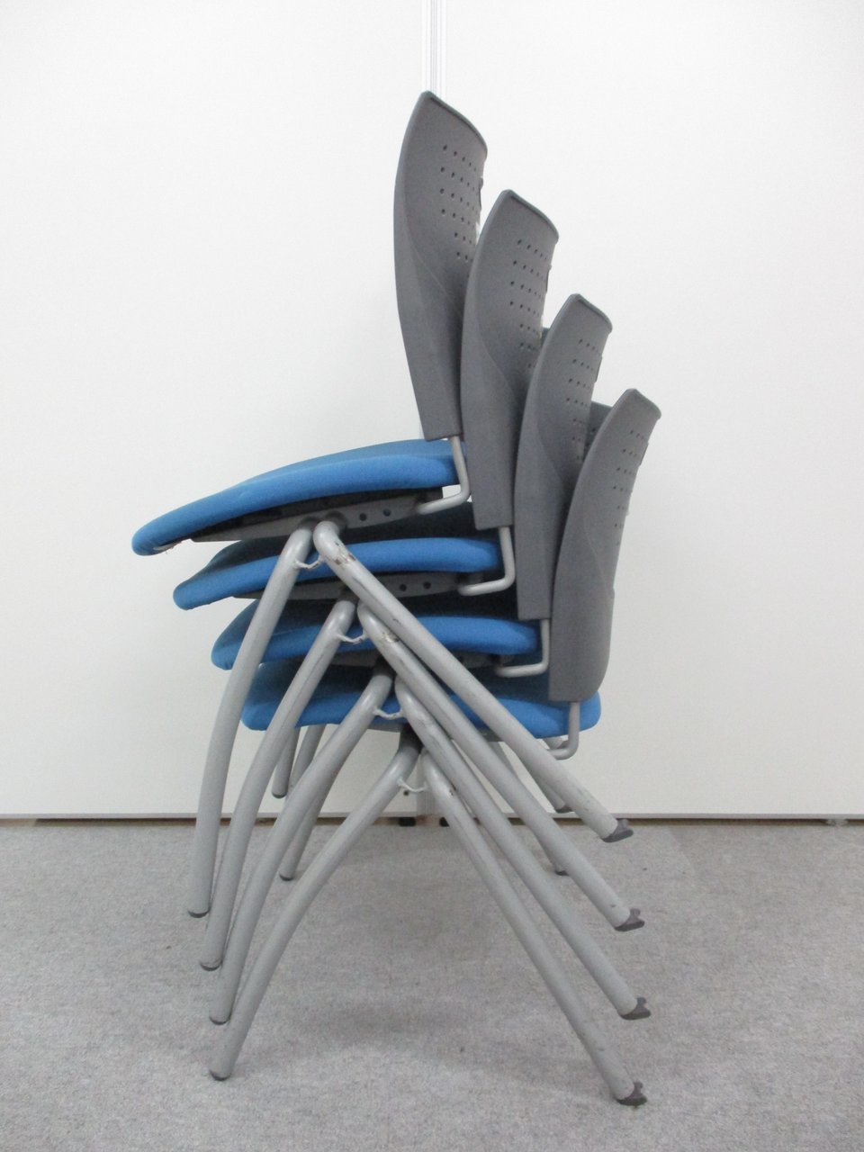 【在庫一掃セール】【4脚セット】ブルーカラーのスタッキングチェアセット 【β】- 足立・葛飾店