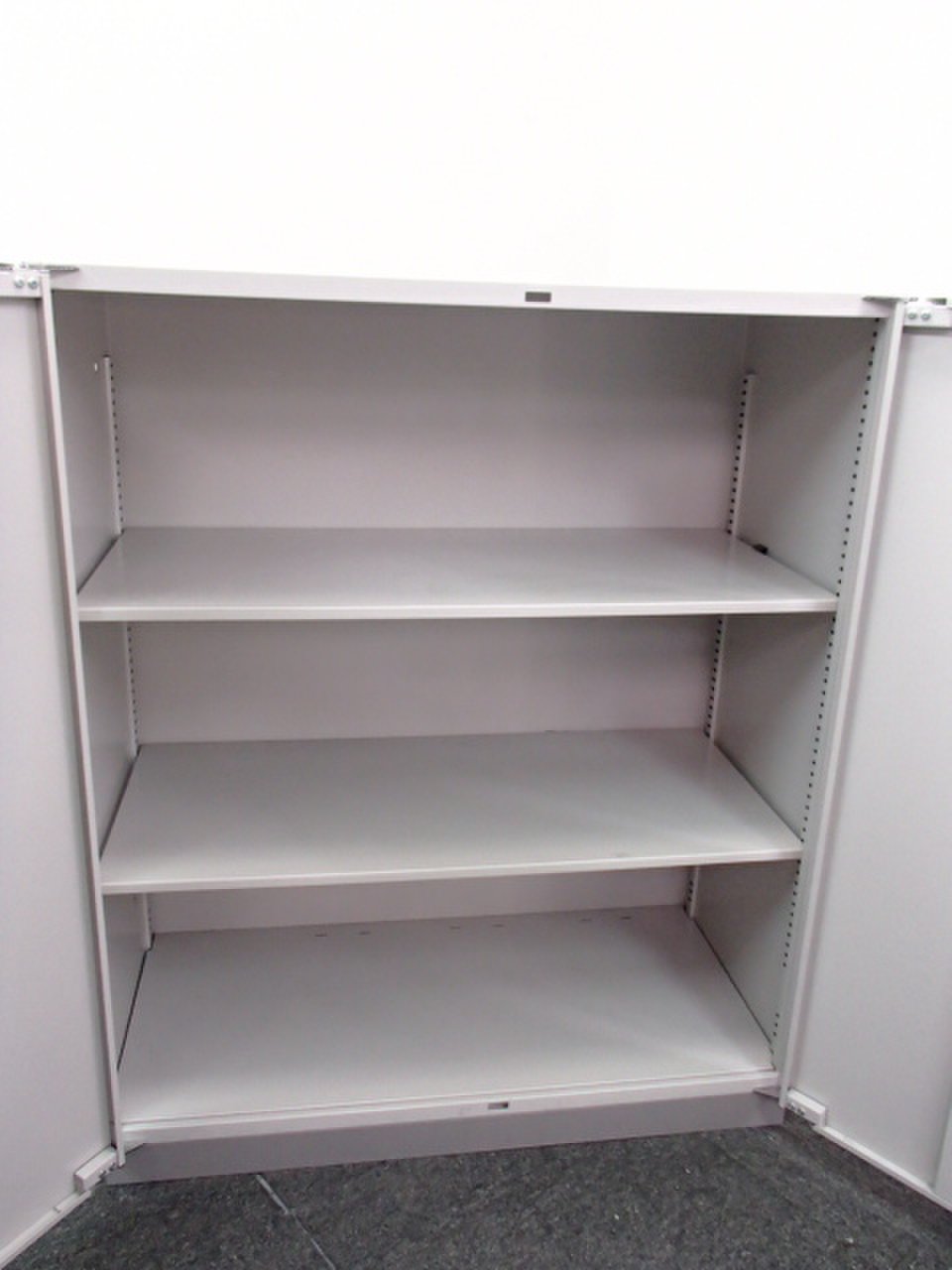 【オフィスの定番!大きく開いて見やすい両開き書庫!】■イトーキ(ITOKI)製 シンライン(THIN LINE)シリーズ 両開き書庫 ローキャビネット H1100㎜ ■シリンダー錠 ■ニューグレー オフィスバスターズ 神戸・三宮店