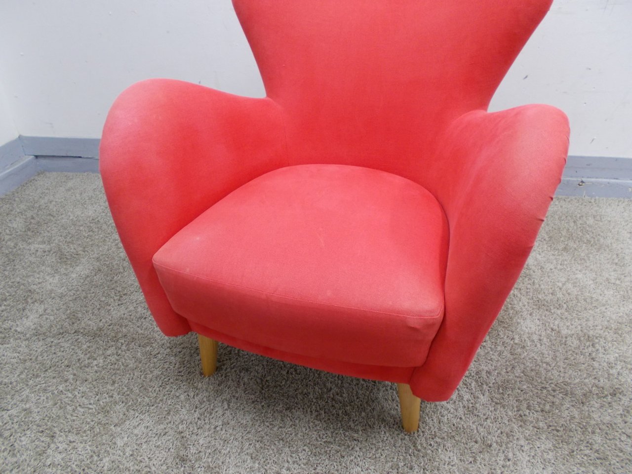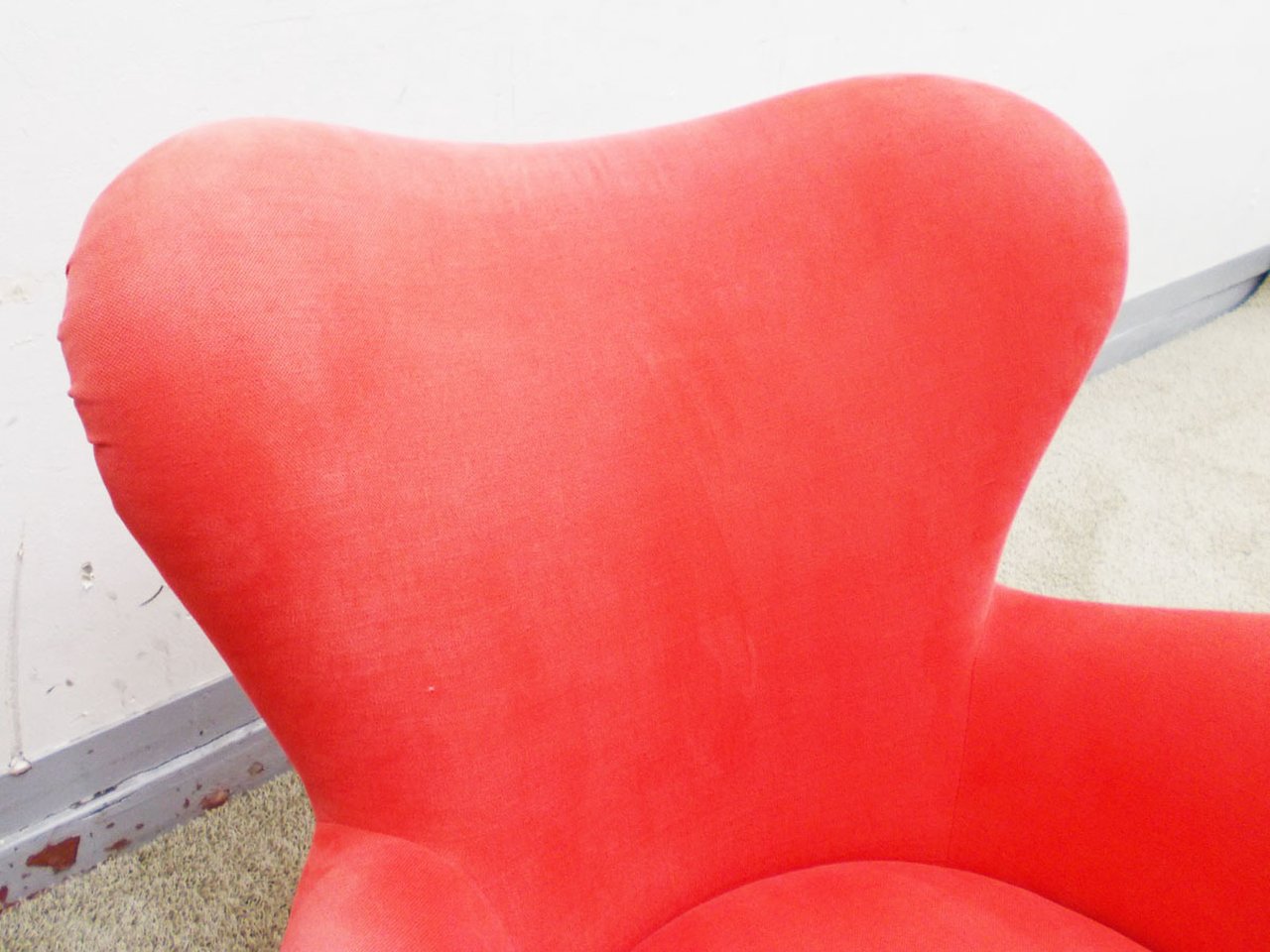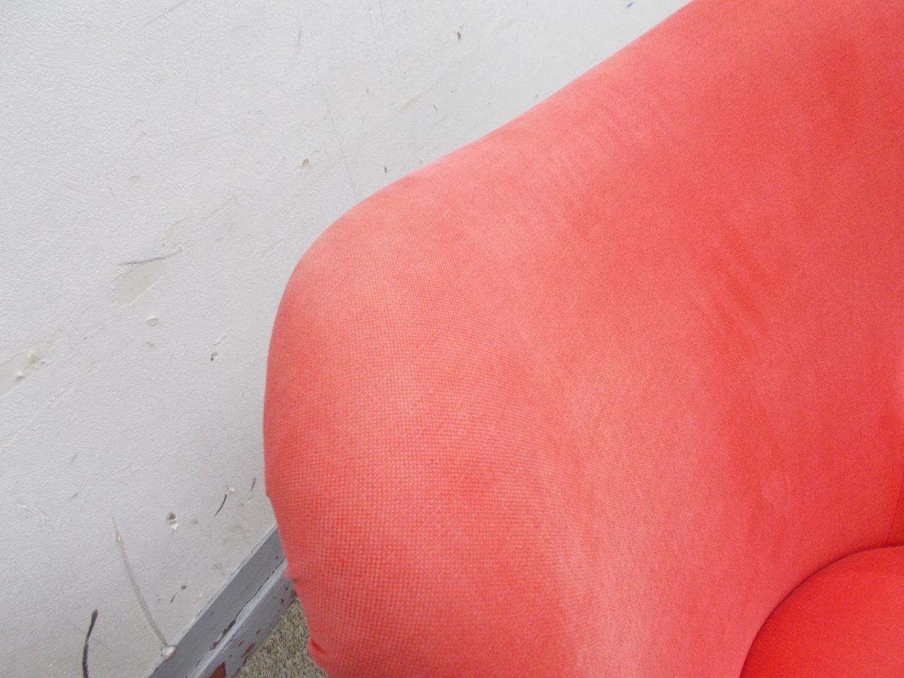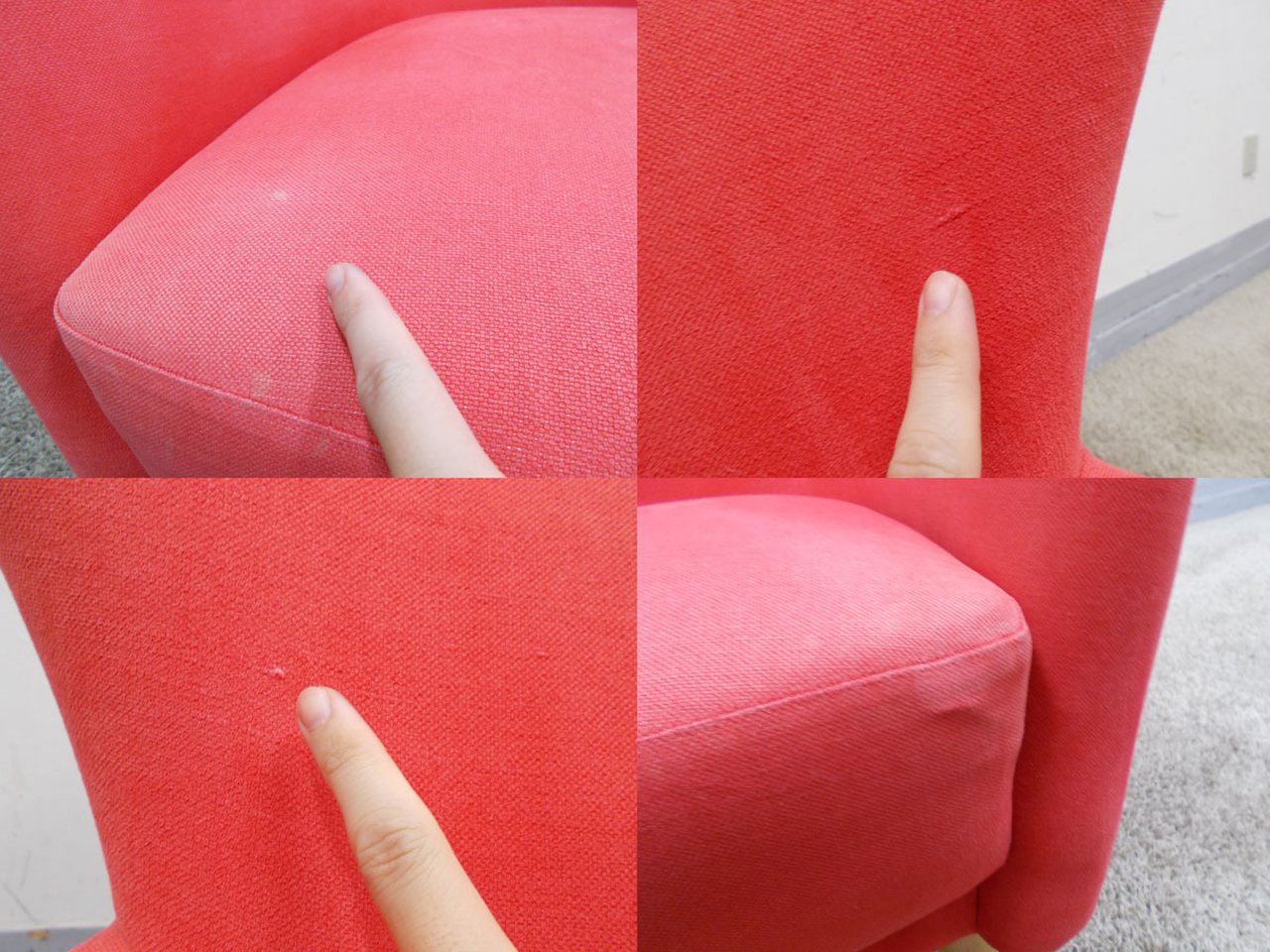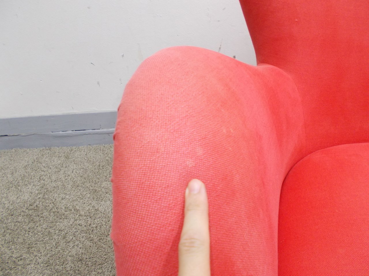 アーム・座面部分のファブリックに日焼けによる退色、薄しシミ汚れ・生地の痛みが見られます。