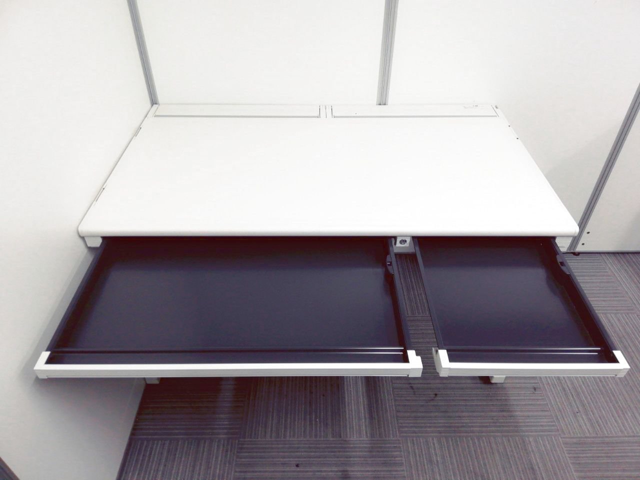 シンプルな平デスクなので薄い引き出しがついている使い勝手抜群の人気者。