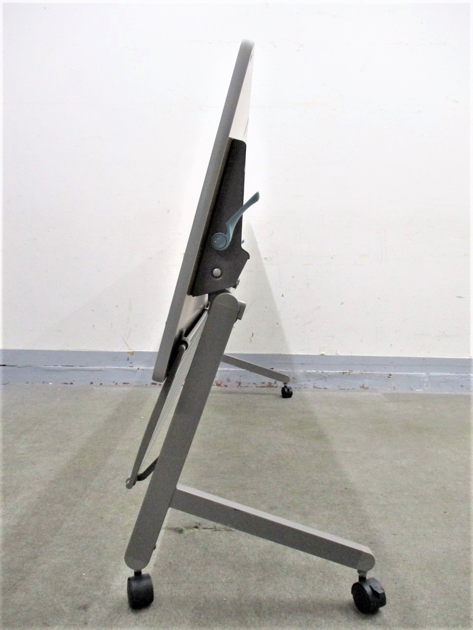 - 一部不具合あり天板歪み、アジャスター無し、キャスター使用不可ようなそのテーブルの本来の効用を果たすための機能以外の一部が使用不可な状態。(例、キャスターロッ ク機能使用不可、棚板無し等がある。)