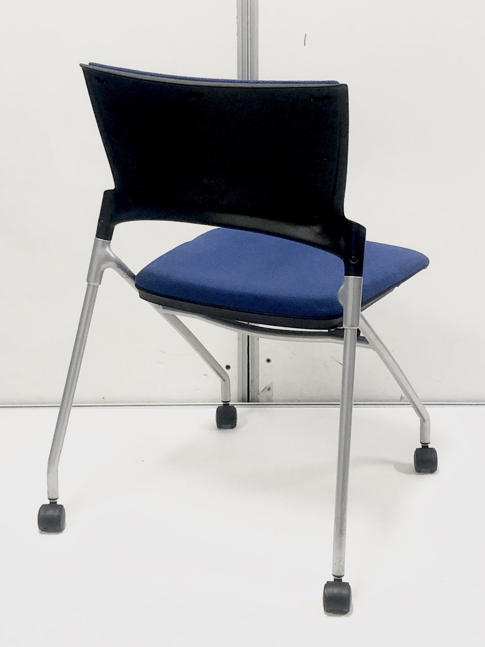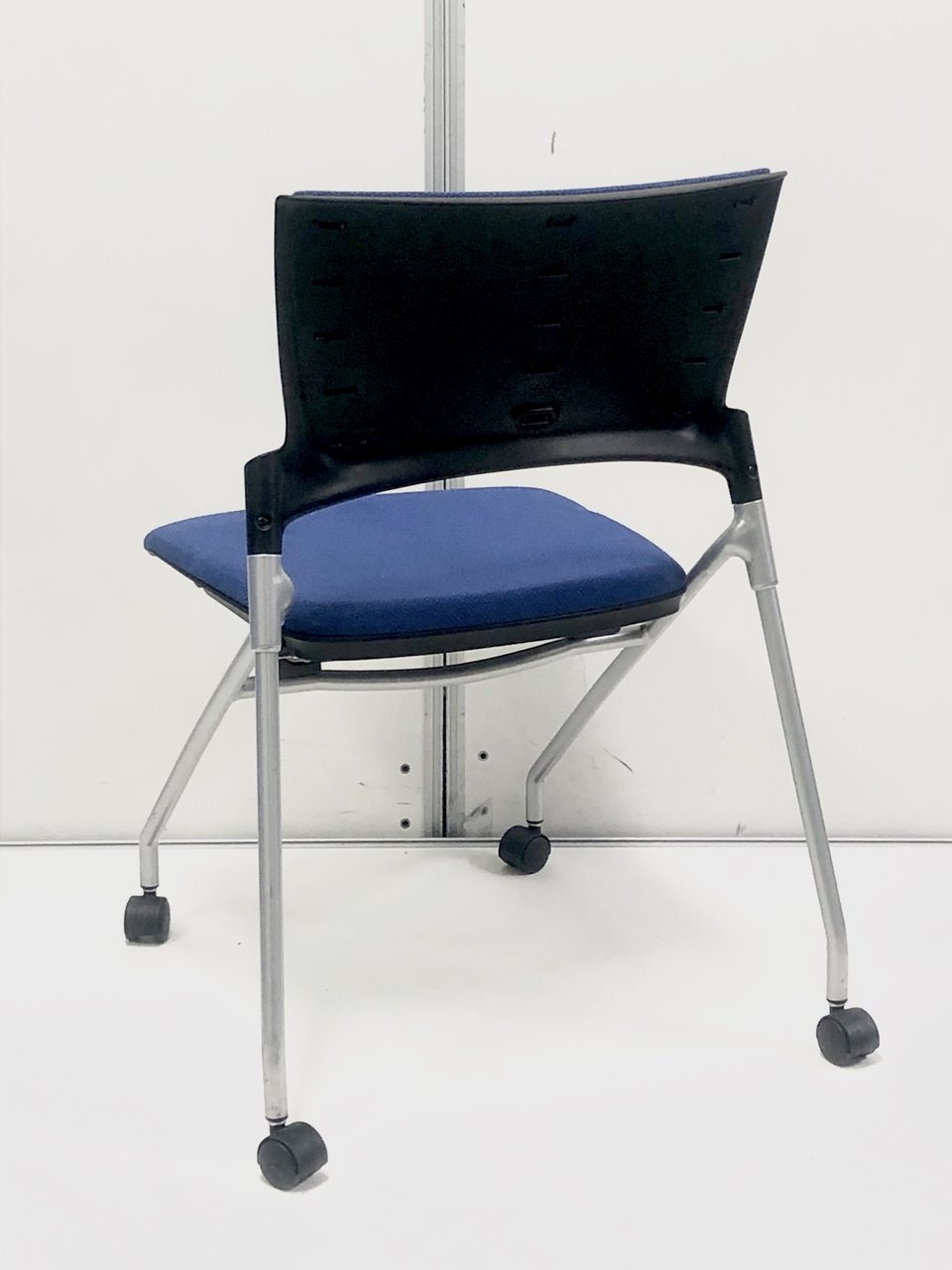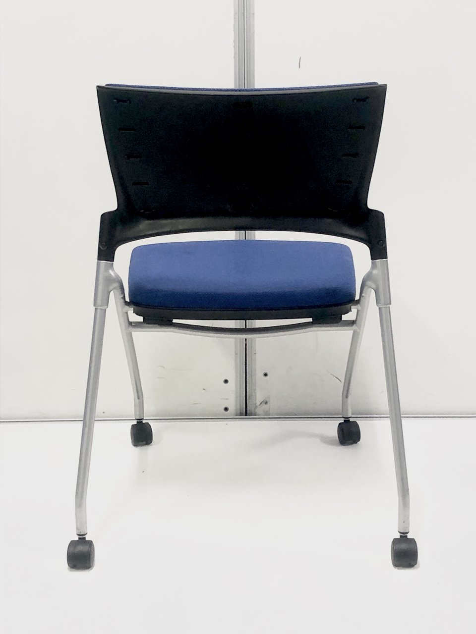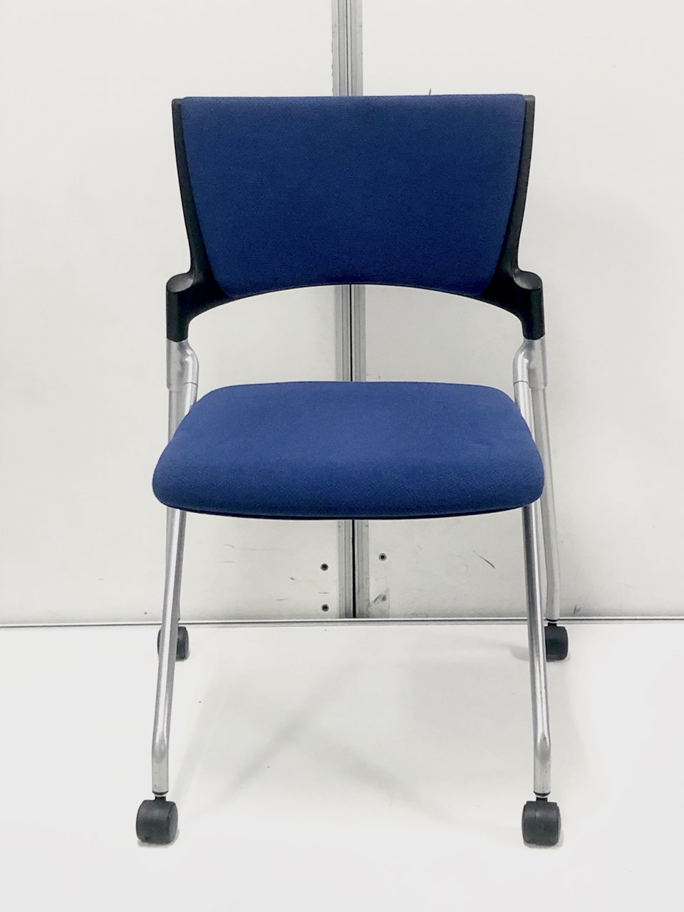 【定価6万円】【ソフトベンディングシェルが背を優しく受け止める!】■イトーキ(ITOKI) マノスチェア(MANOSS) 肘無し スタッキングチェア ミーティングチェア ■背パッド付 ■キャスター脚 ■ブルー