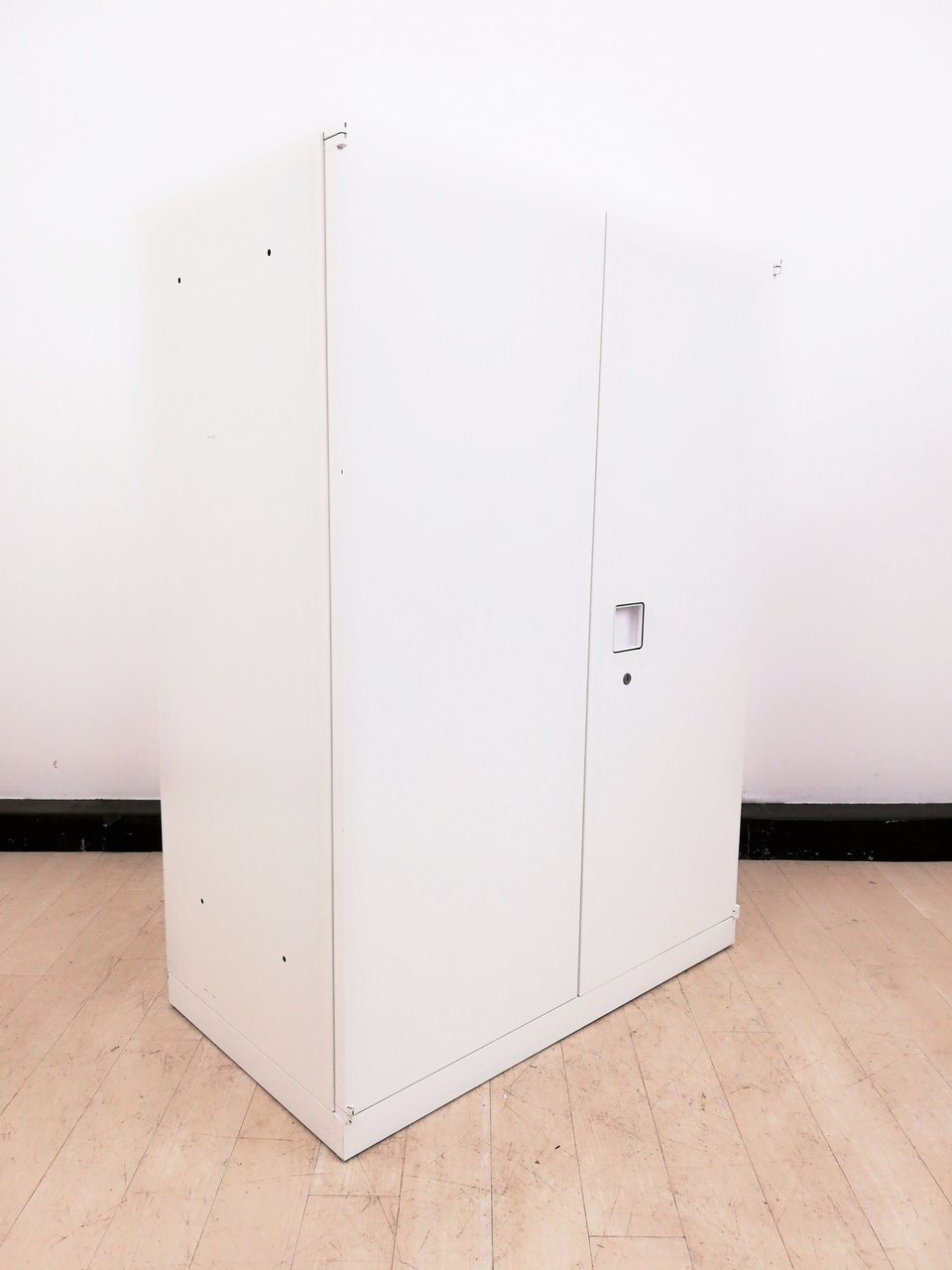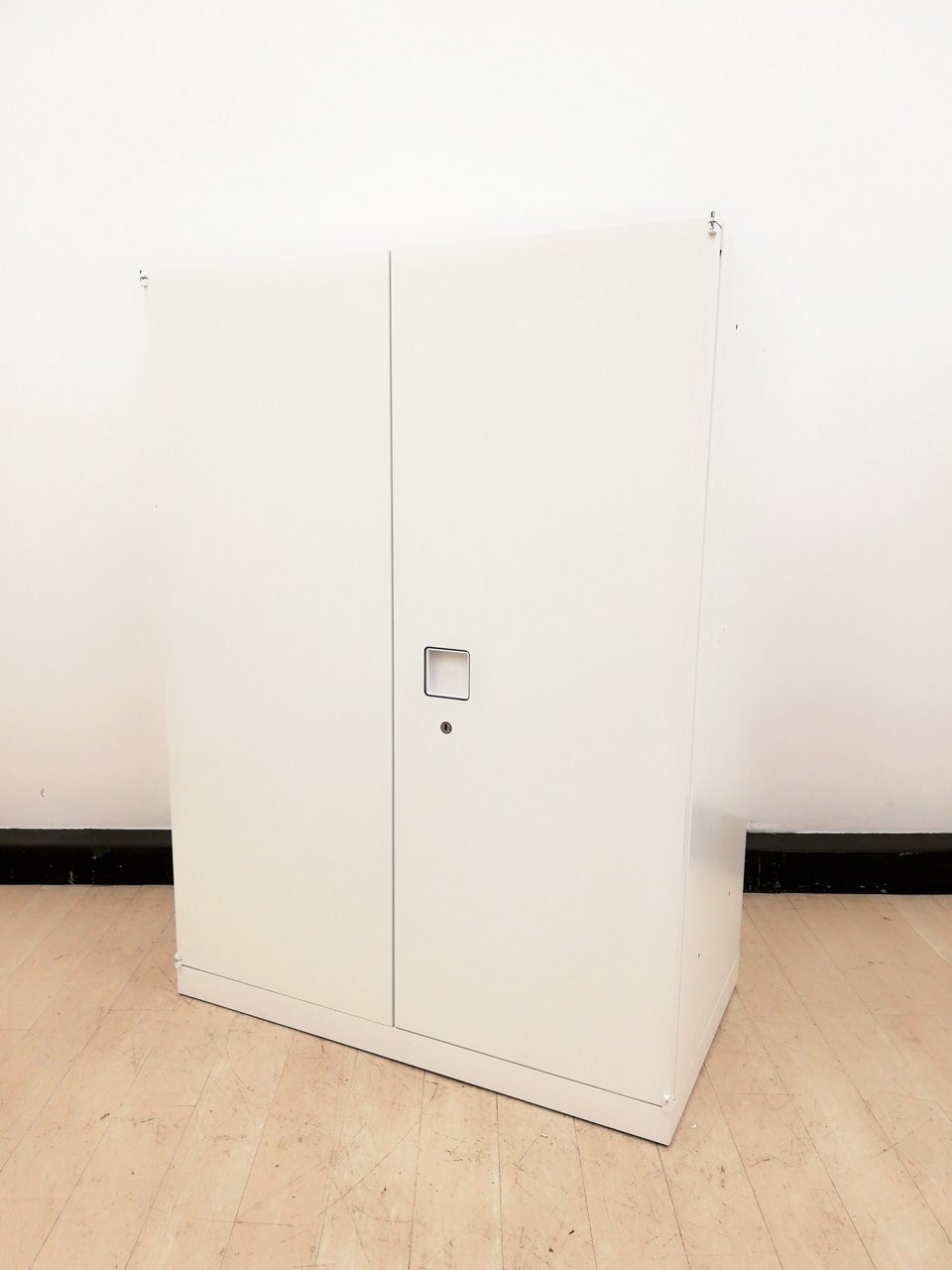 【オフィスの書類をスッキリ整理!取っ手がどの方向からでも開くマルチハンドルが人気!】■オカムラ(okamura)製 レクトラインシリーズ ローキャビネット 両開き書庫 H1250㎜ ■ホワイト ■シリンダー錠