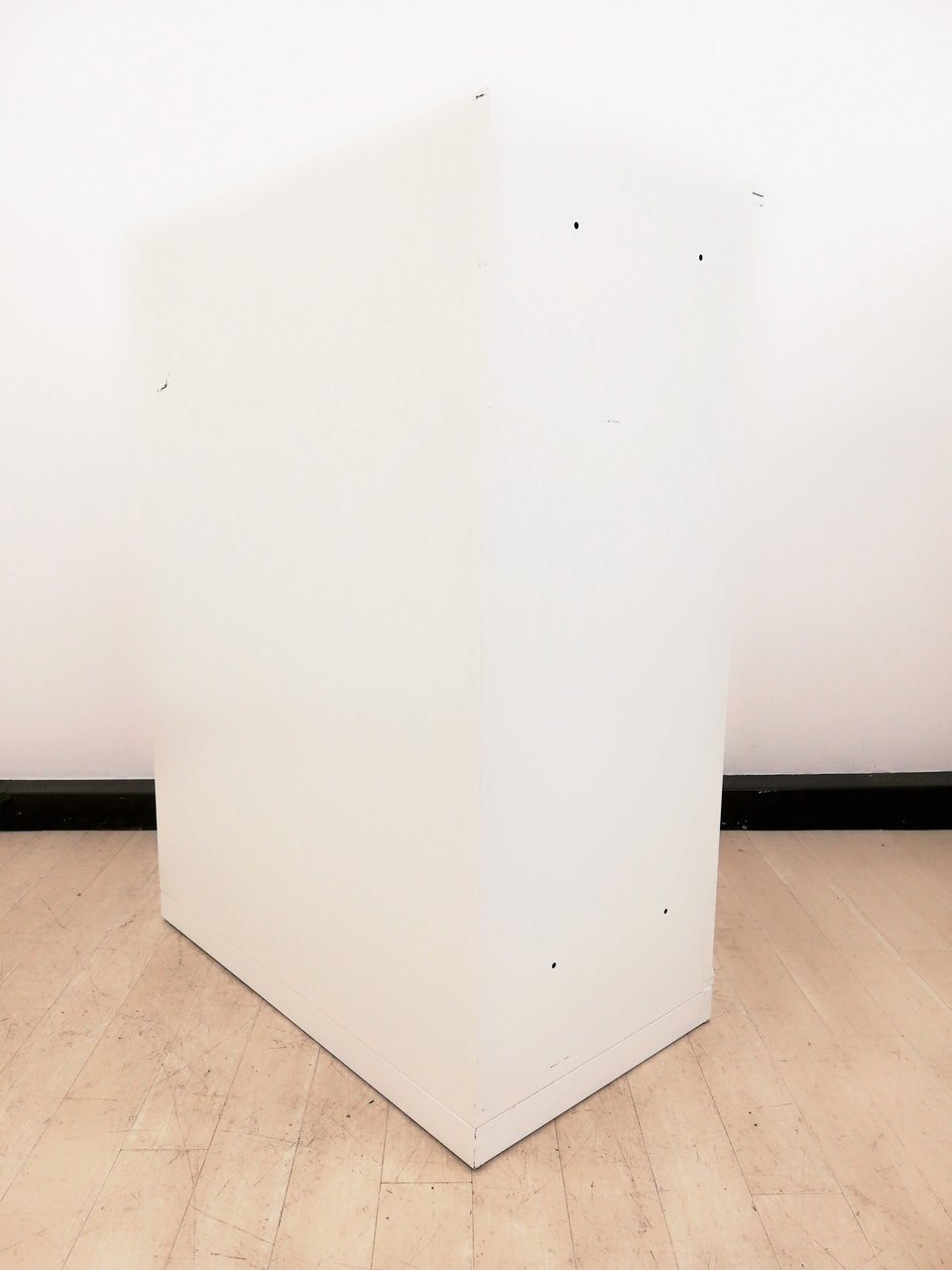 - 多数不具合あり引出の開閉不可、施錠不可、棚板無しといったその書庫の本来の効用を果たすための機能以外の多数が使用不可(例、扉、引出の開閉がしづらいなどがある。 )