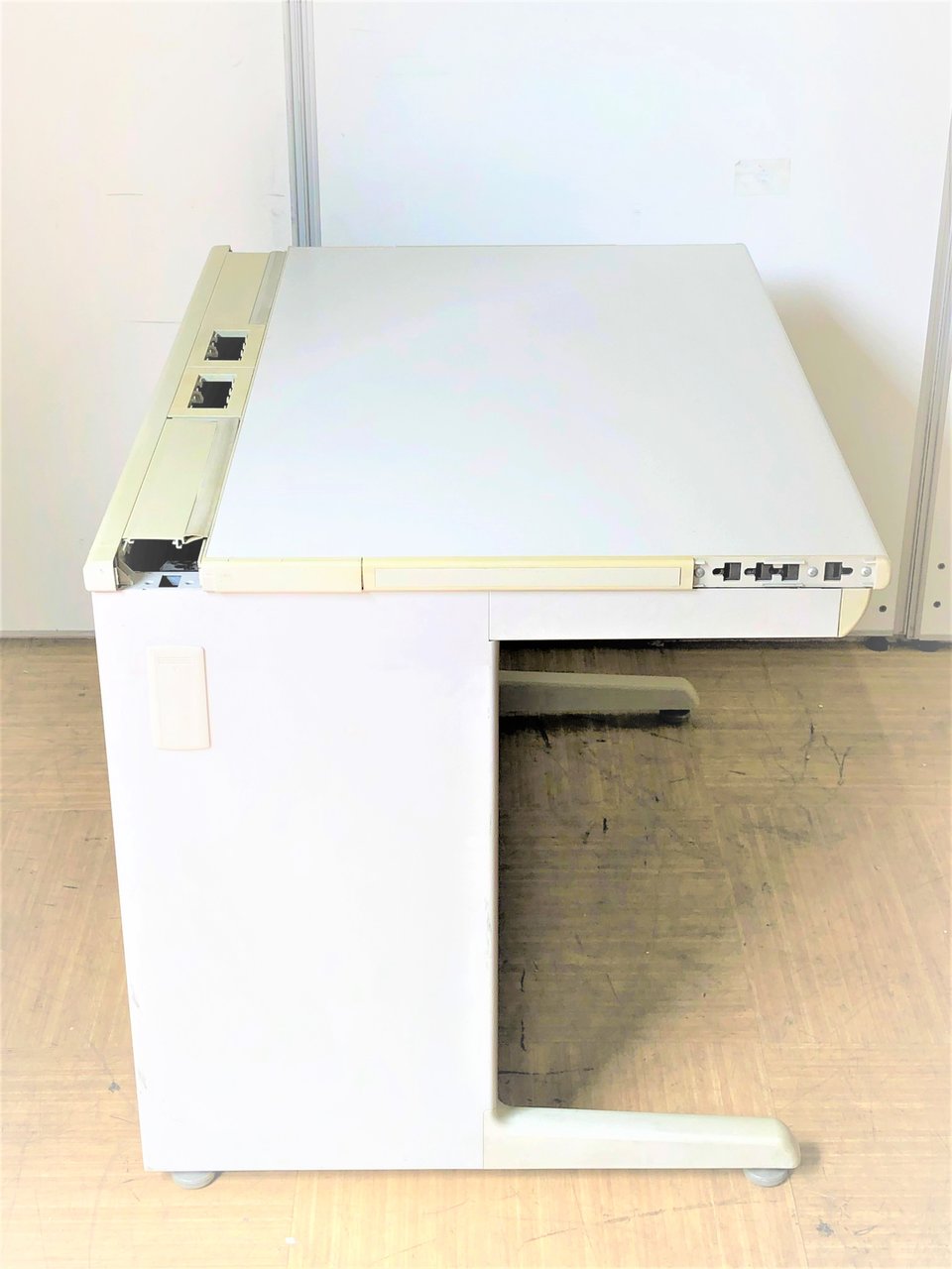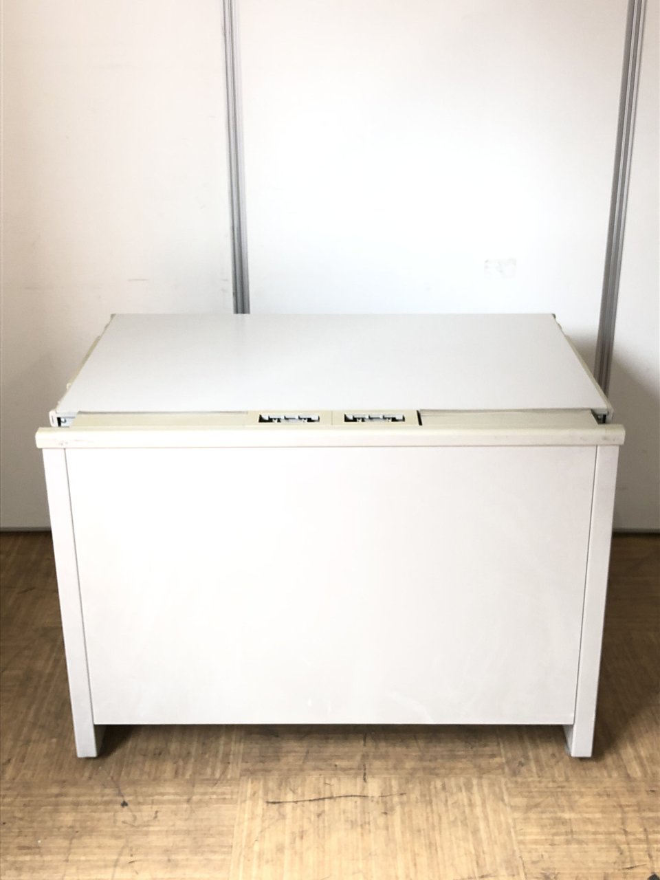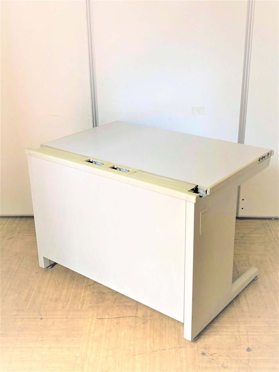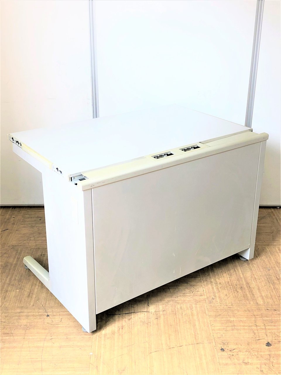 - 袖机のワゴンは、最下段がロング引出しになっており、従来より収納力120%アップ。