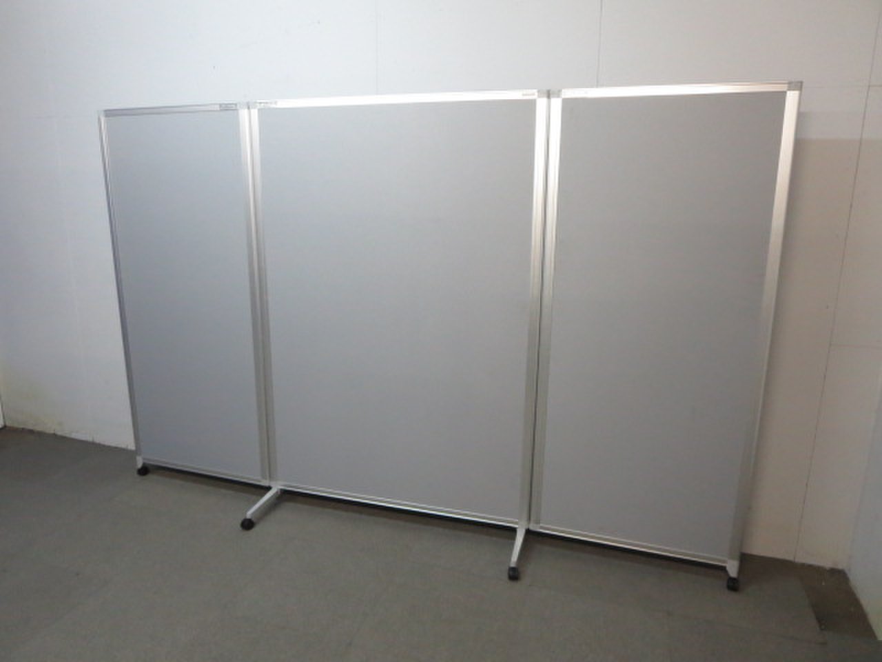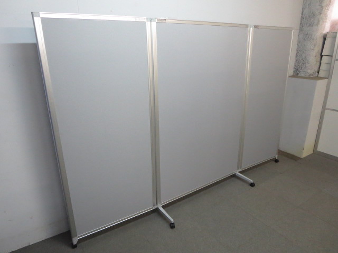 【三つ折りパーテーション!】オカムラ製!幅2800mm!【キャスター付き!】- 川崎店