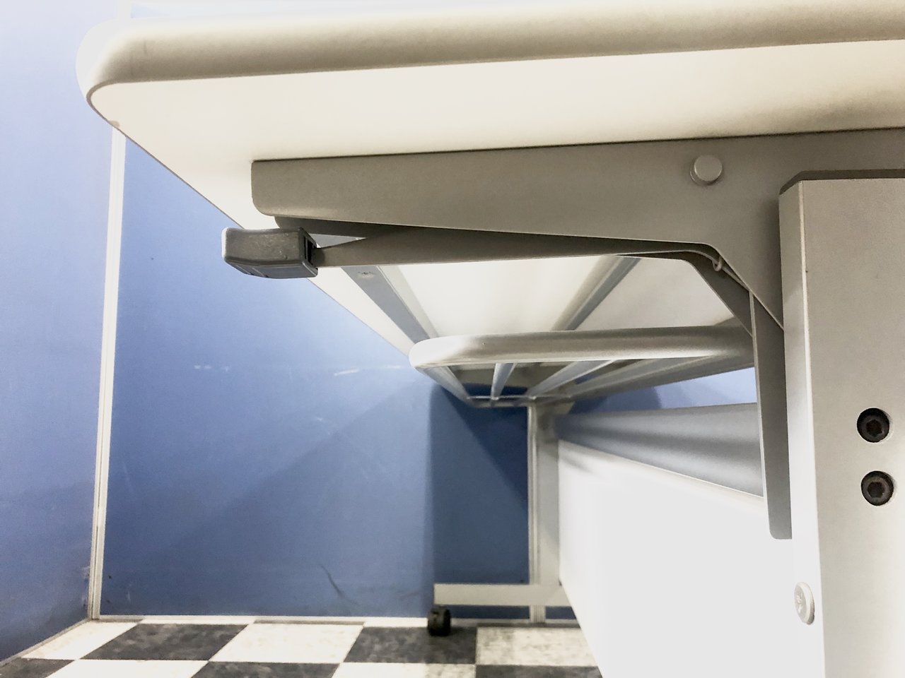 - 一部不具合あり天板歪み、アジャスター無し、キャスター使用不可ようなそのテーブルの本来の効用を果たすための機能以外の一部が使用不可な状態。(例、キャスターロッ ク機能使用不可、棚板無し等がある。)