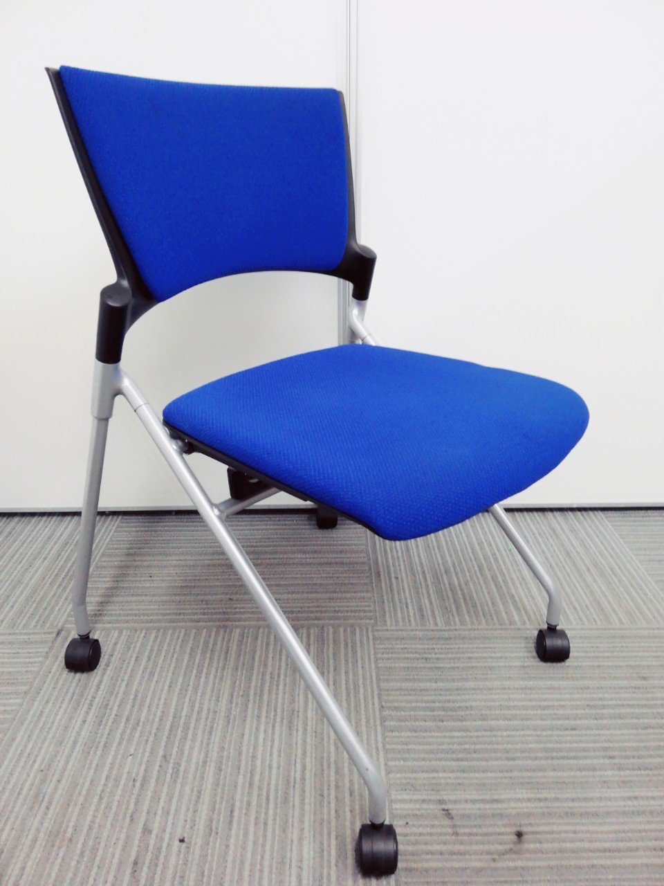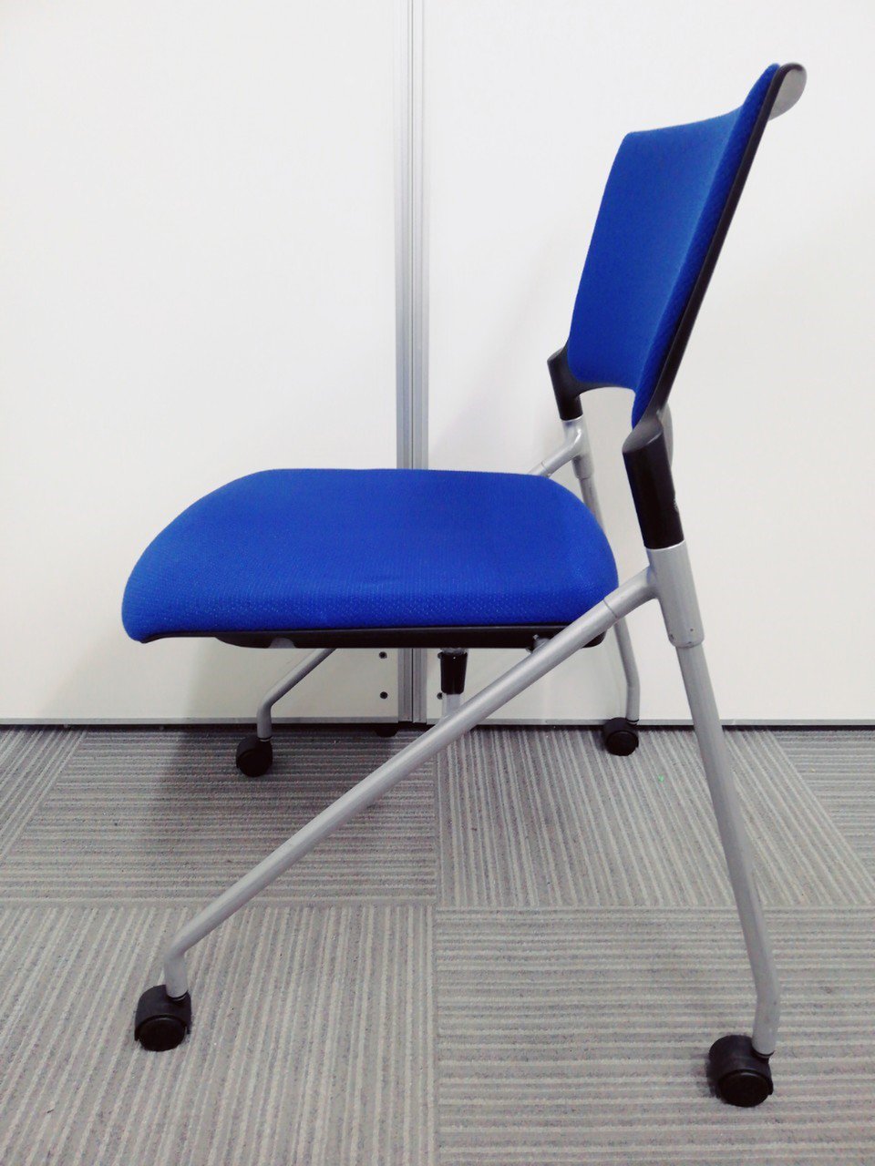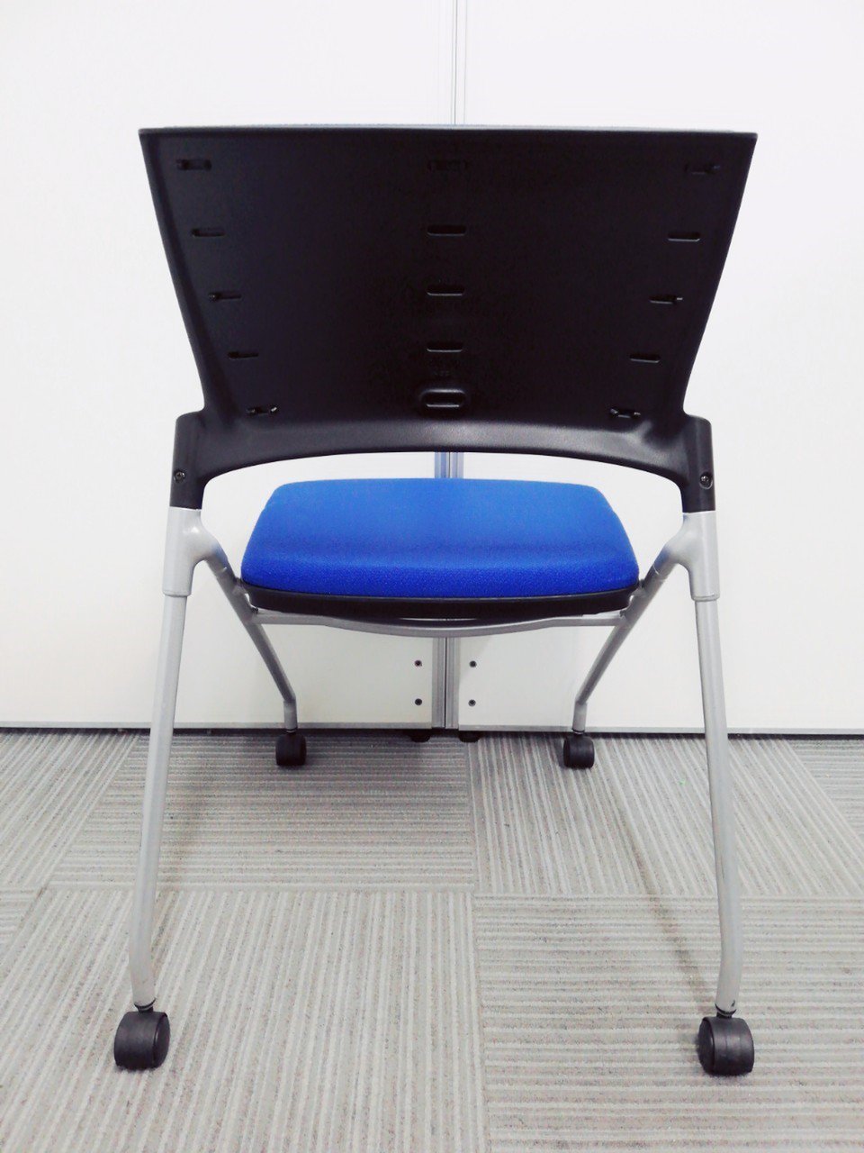 【定価6万円】【ソフトベンディングシェルが背を優しく受け止める!】■イトーキ(ITOKI) マノスチェア(MANOSS) 肘無し スタッキングチェア ミーティングチェア ■背パッド付 ■キャスター脚 ■ブルー