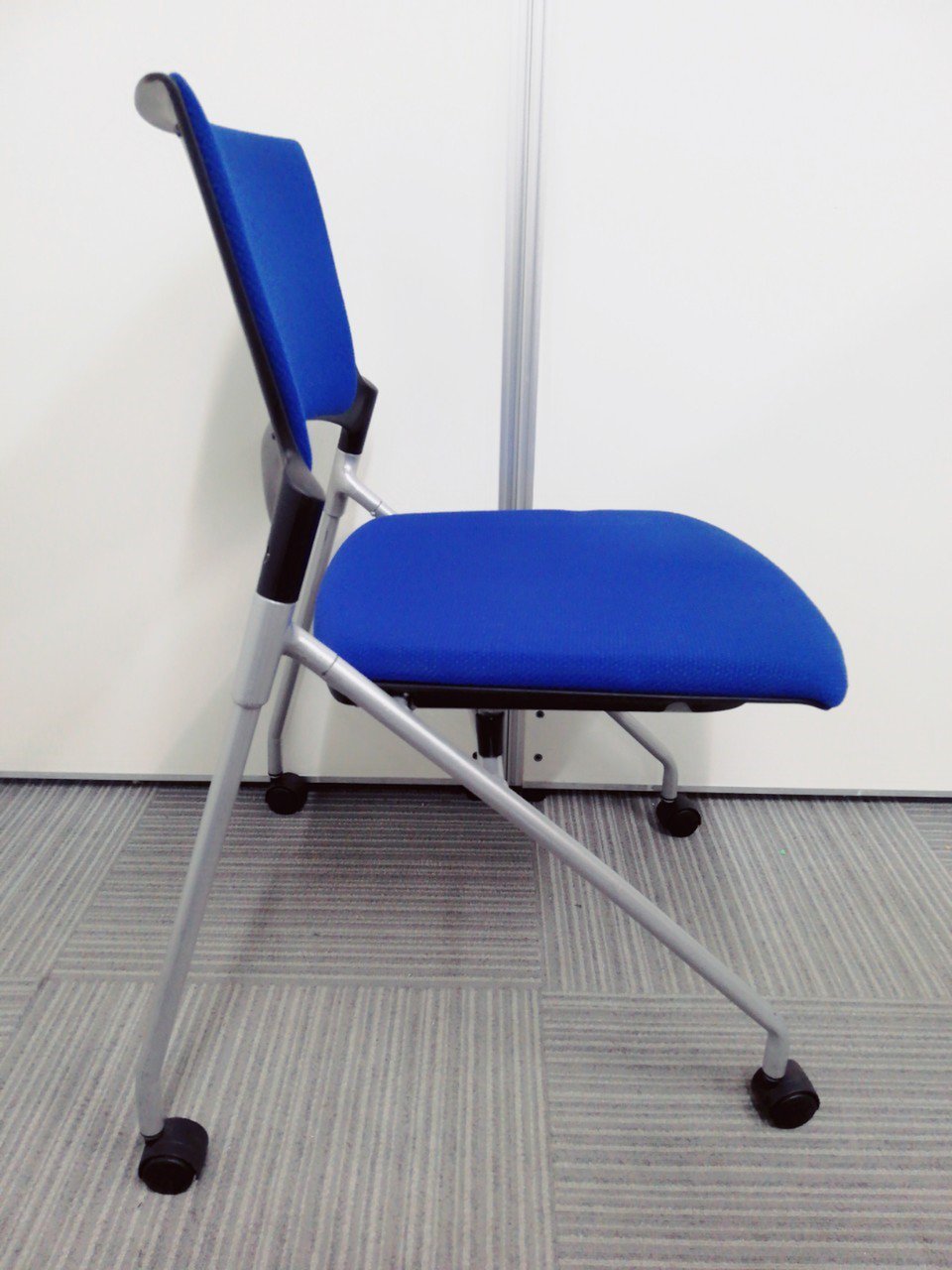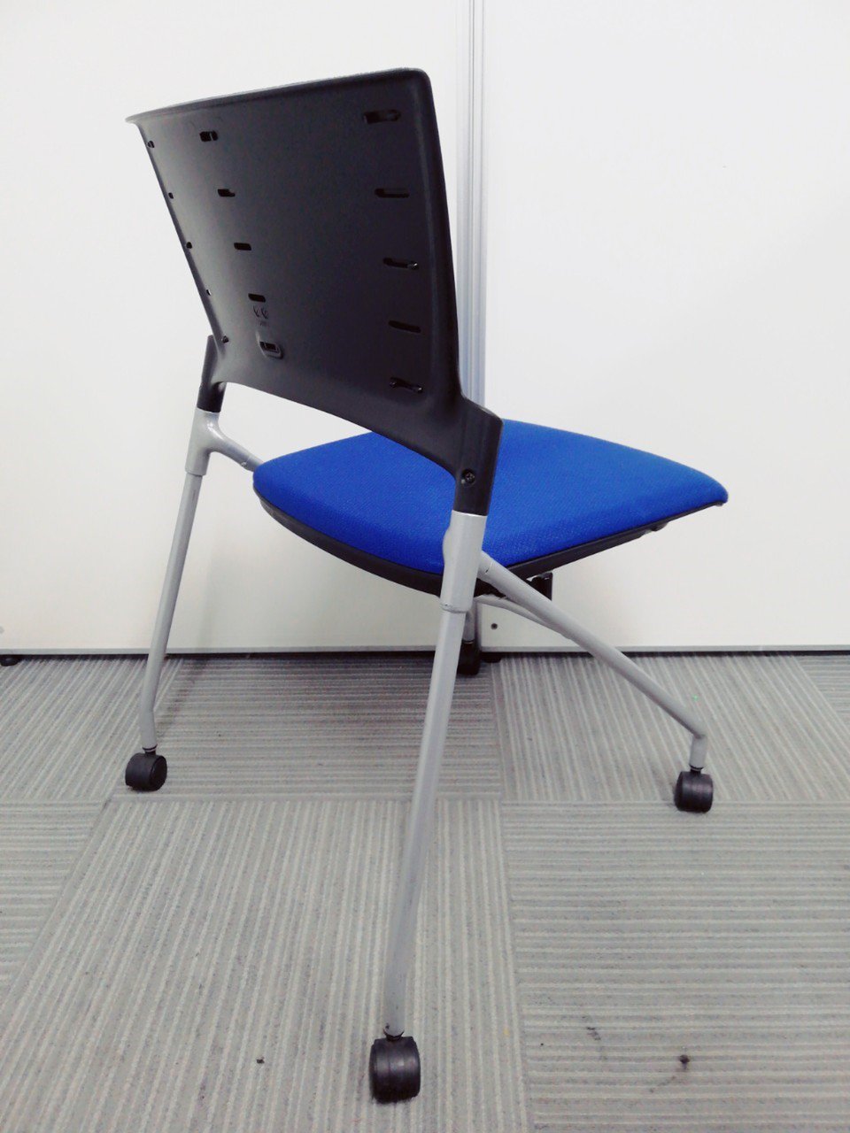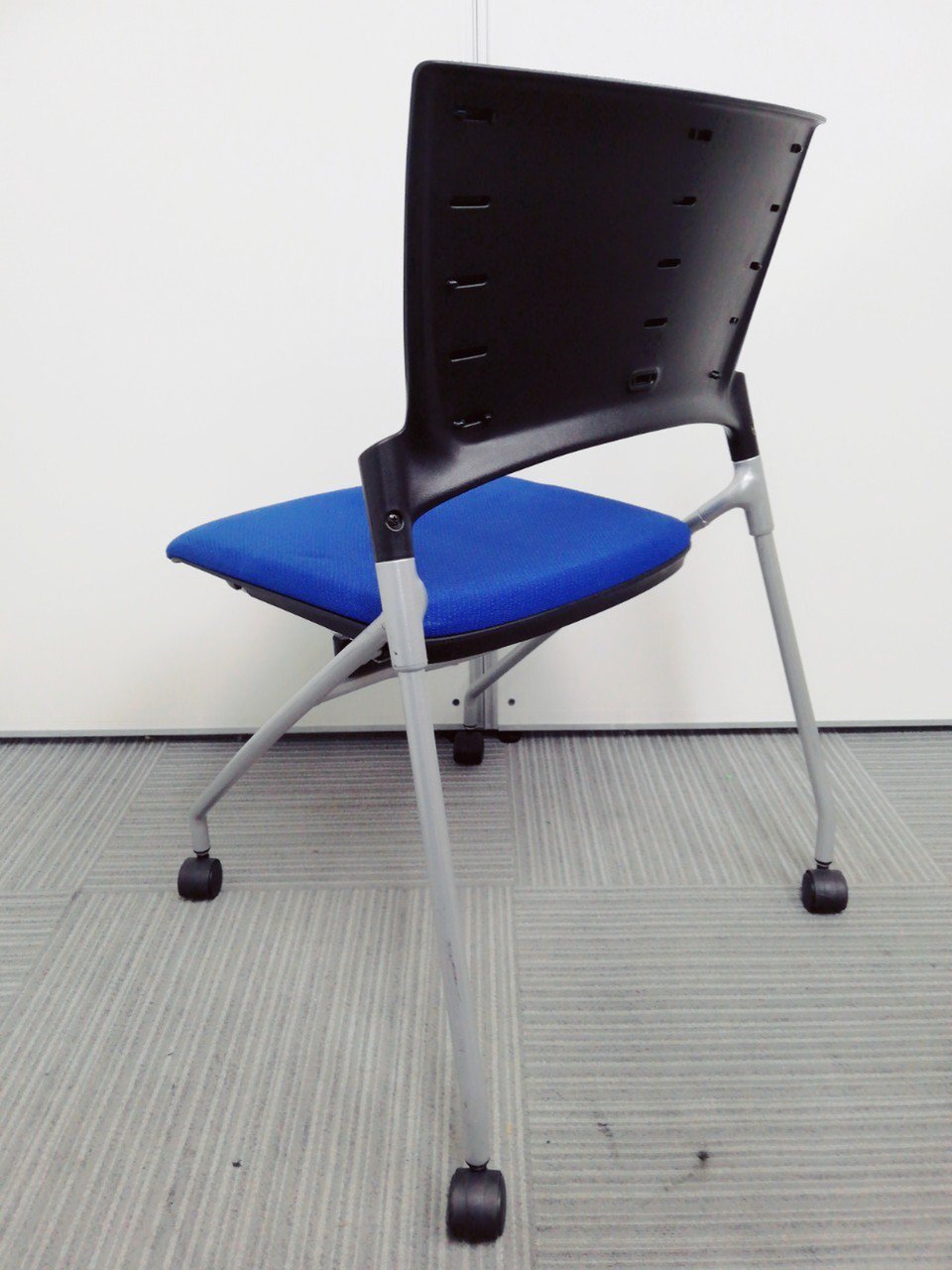 【定価6万円】【ソフトベンディングシェルが背を優しく受け止める!】■イトーキ(ITOKI) マノスチェア(MANOSS) 肘無し スタッキングチェア ミーティングチェア ■背パッド付 ■キャスター脚 ■ブルー