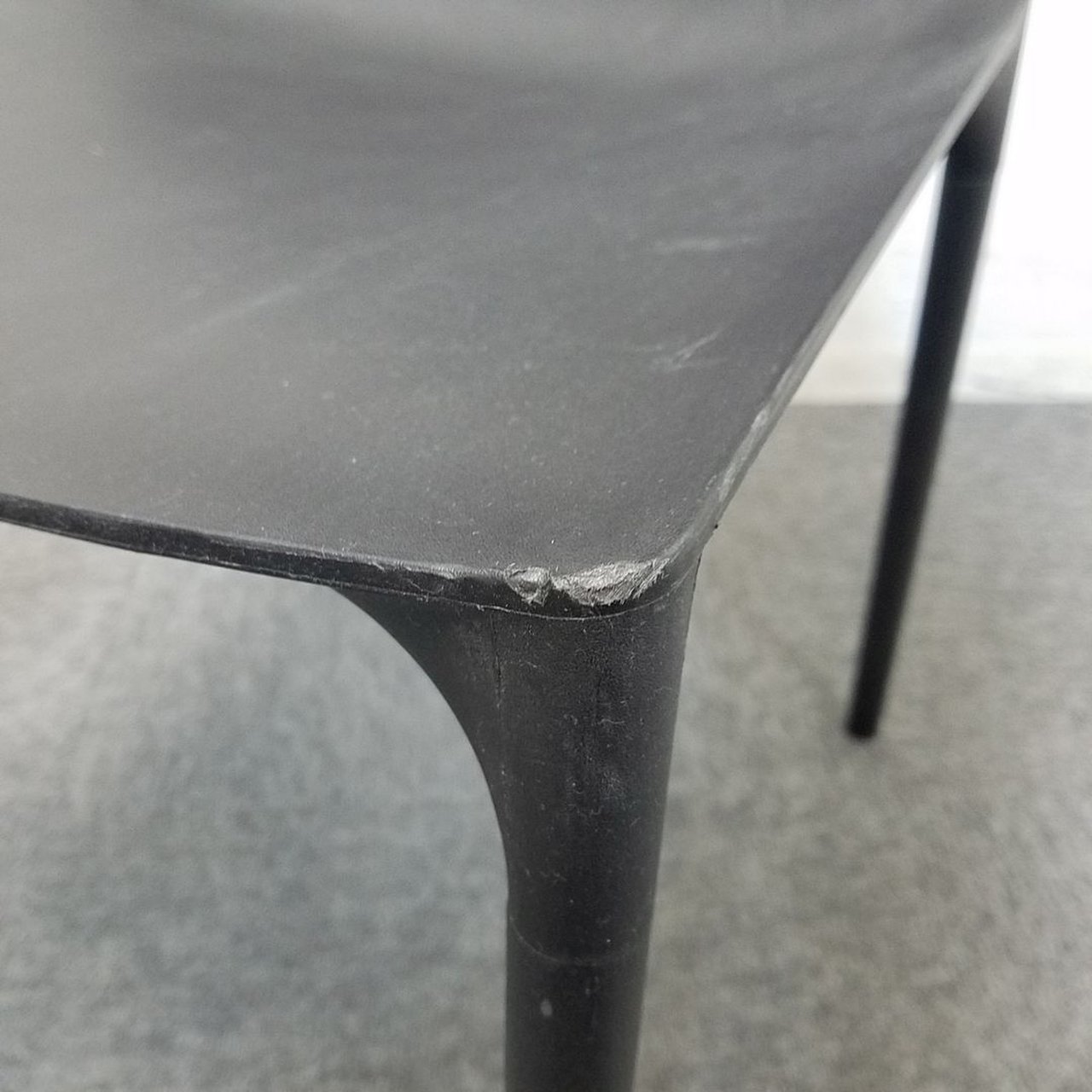 - かなり強い濃い黄ばみ・変色が商品全体にある。(例、座面・背もたれ、脚部等にある。)