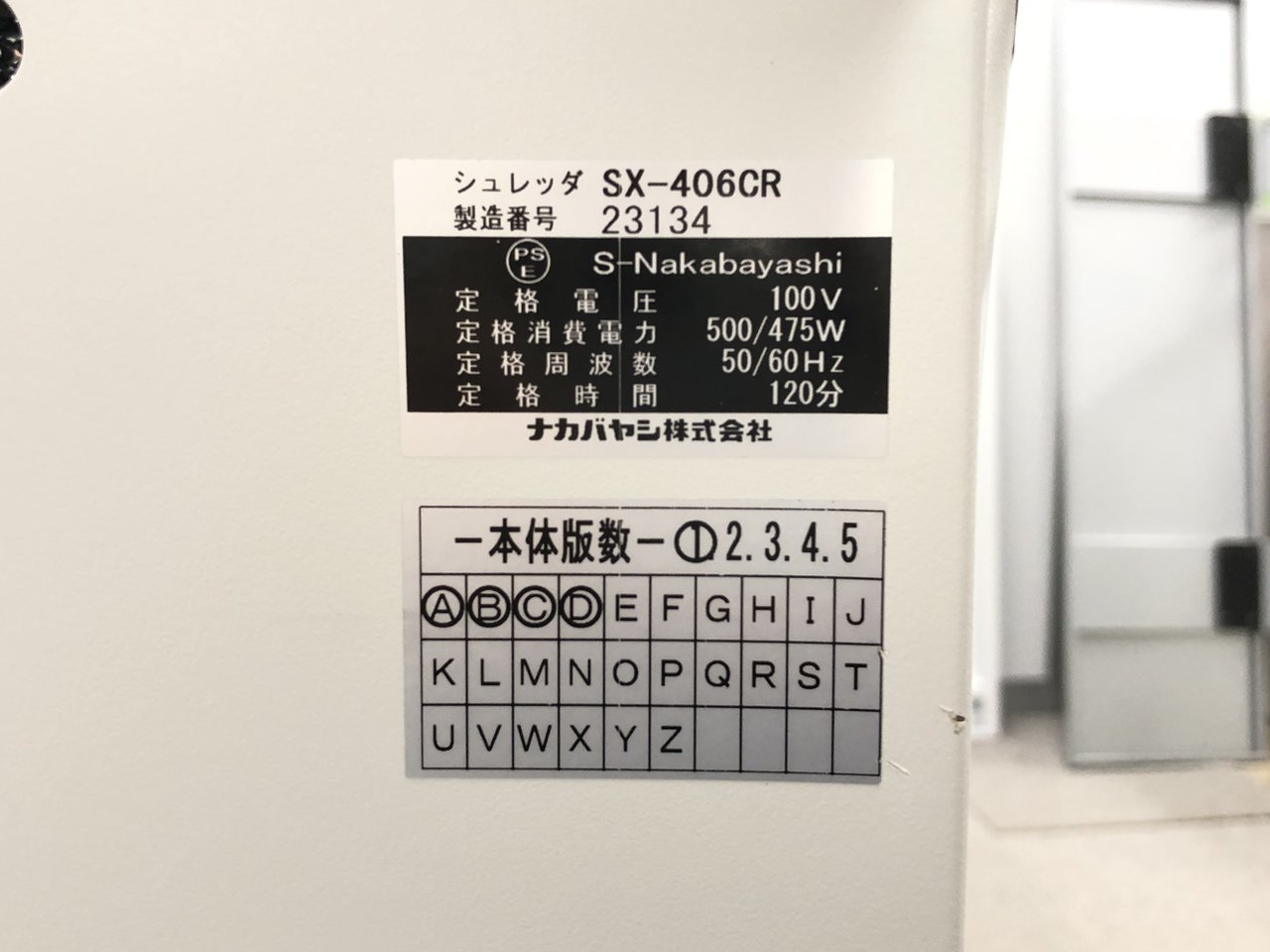 【中古】 SX-406CR ナカバヤシ シュレッダー 266170