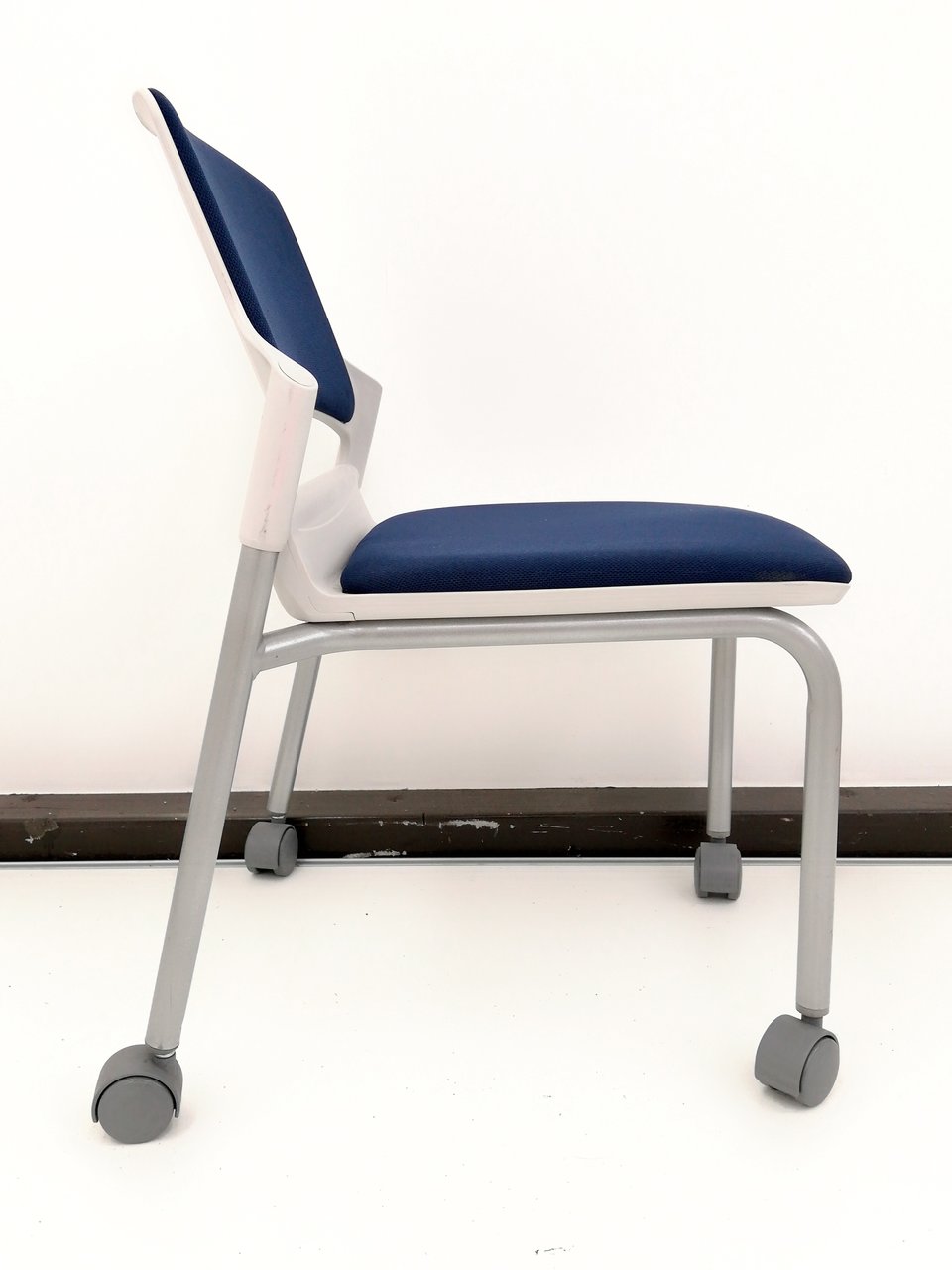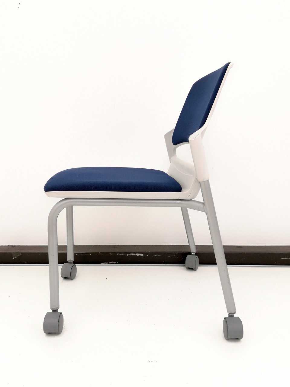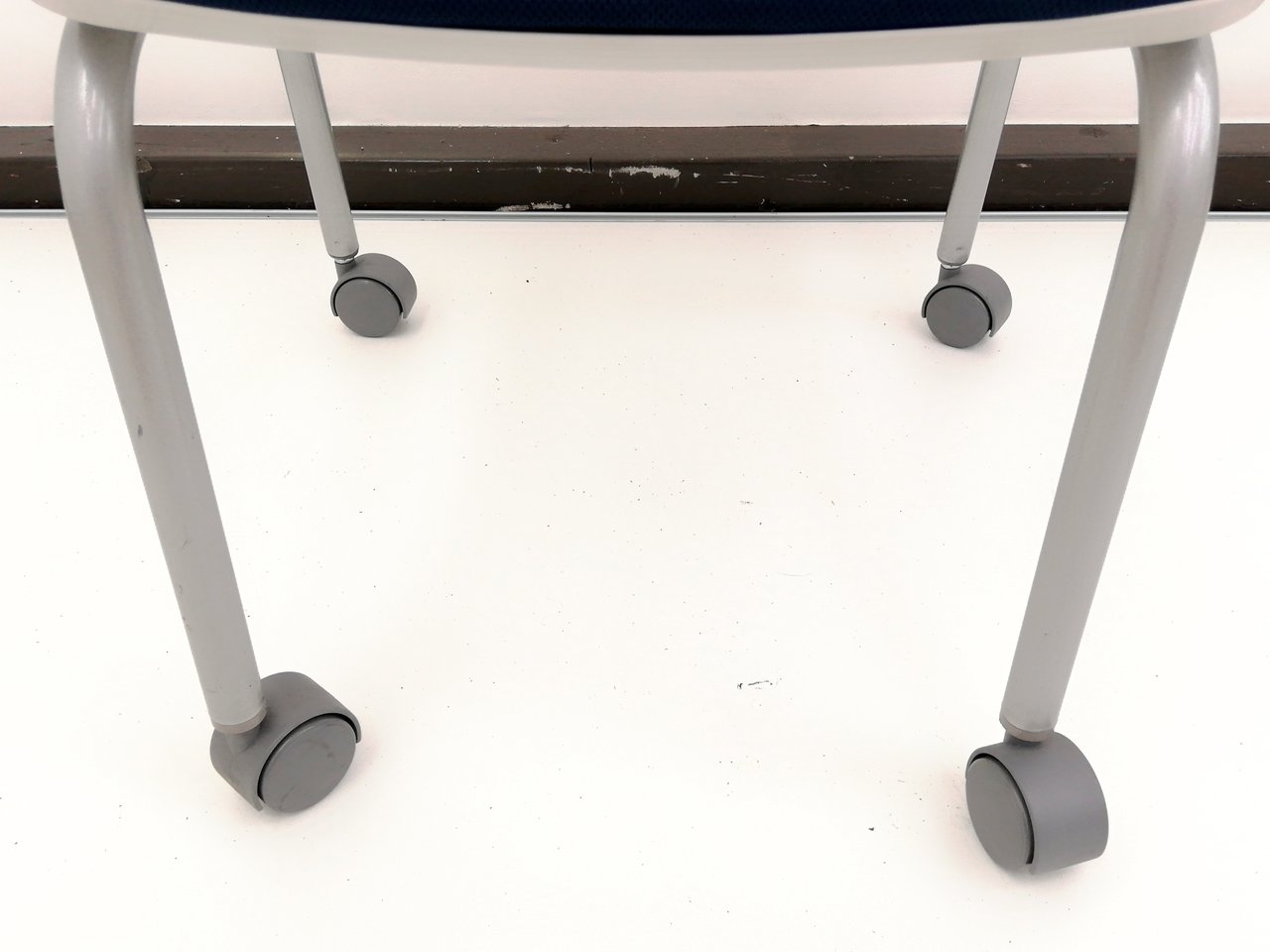 【残り2脚の為、お安く!】【キャスター付きで使いやすい!ミーティングに最適!】■ウチダ(UCHIDA)製 MF-180シリーズ スタッキングチェア ミーティングチェア ■キャスター付き ■レイズンブルー×ホワイトシェル