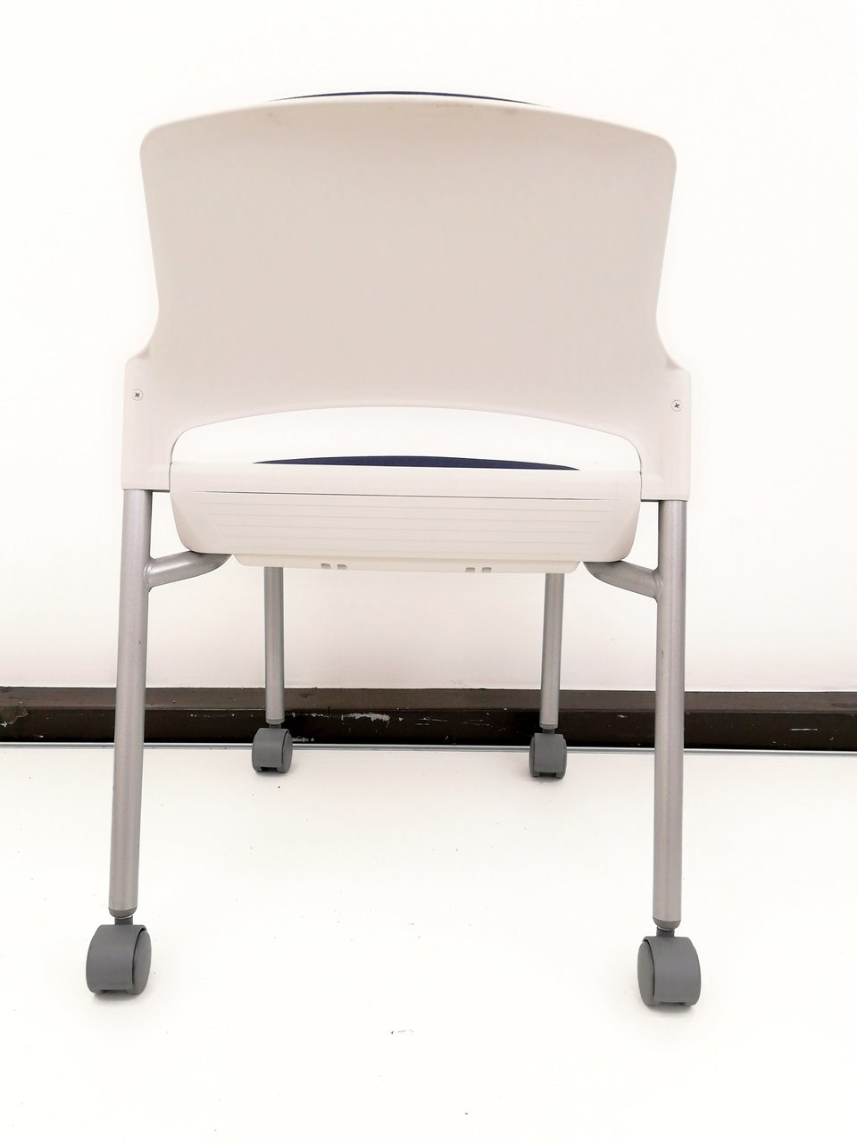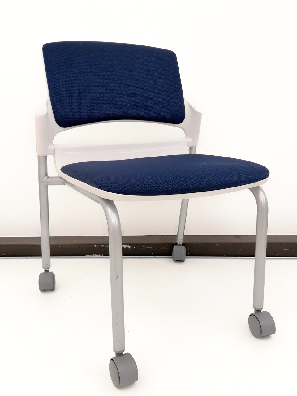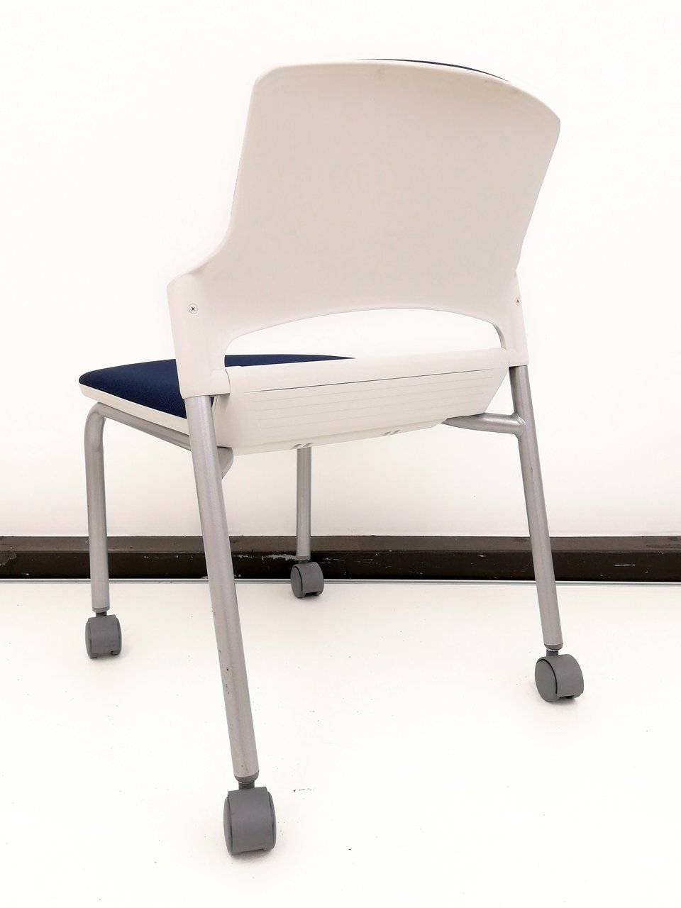 【残り2脚の為、お安く!】【キャスター付きで使いやすい!ミーティングに最適!】■ウチダ(UCHIDA)製 MF-180シリーズ スタッキングチェア ミーティングチェア ■キャスター付き ■レイズンブルー×ホワイトシェル