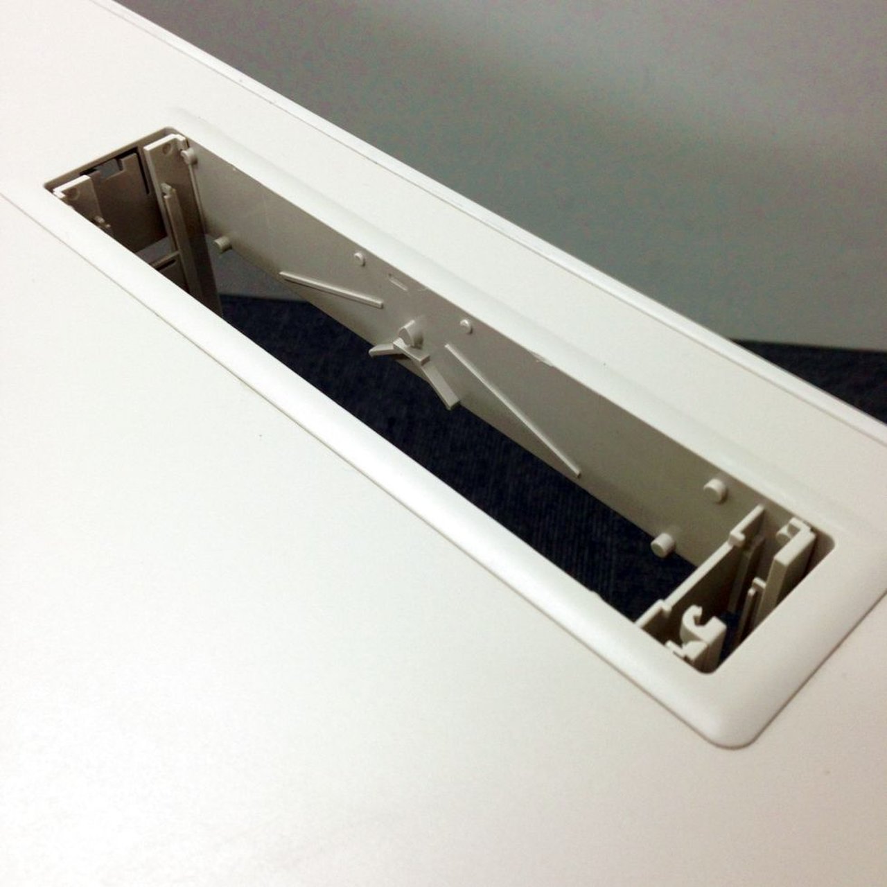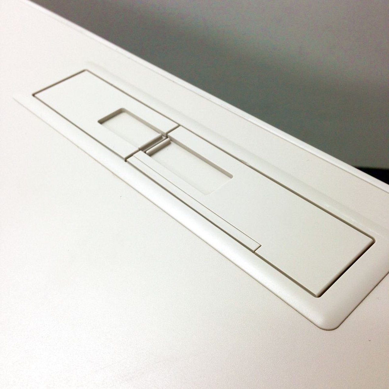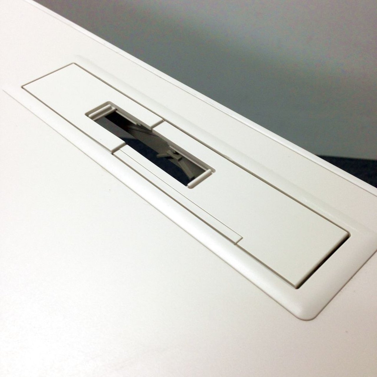 配線カバーは卓上の配線キャップを回転させるとOAコネクタやアース付きコンセントも