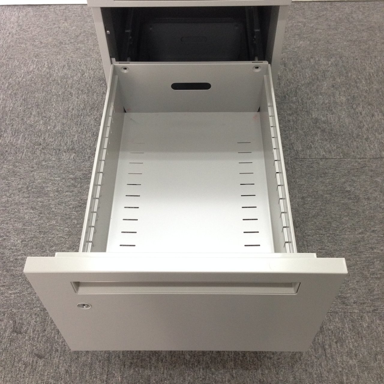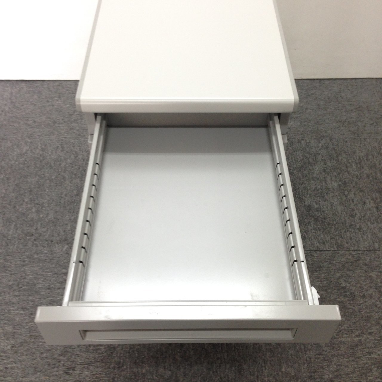 - 一部不具合ありその脇机・ワゴンの本来の効用を果たすための機能以外の一部が使用不可な状態。(例、引出が開閉しづらい、 キャスターロック機能使用不可、ラッチ不良 等がある。)