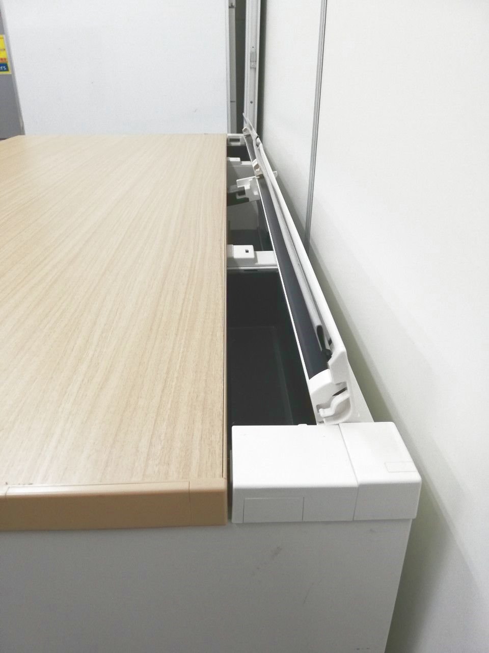 - 対向配線も横配線も自在なケーブリングが可能。幕板内側に余長ケーブルやOAタップを収納できる配線ダクトを標準装備。