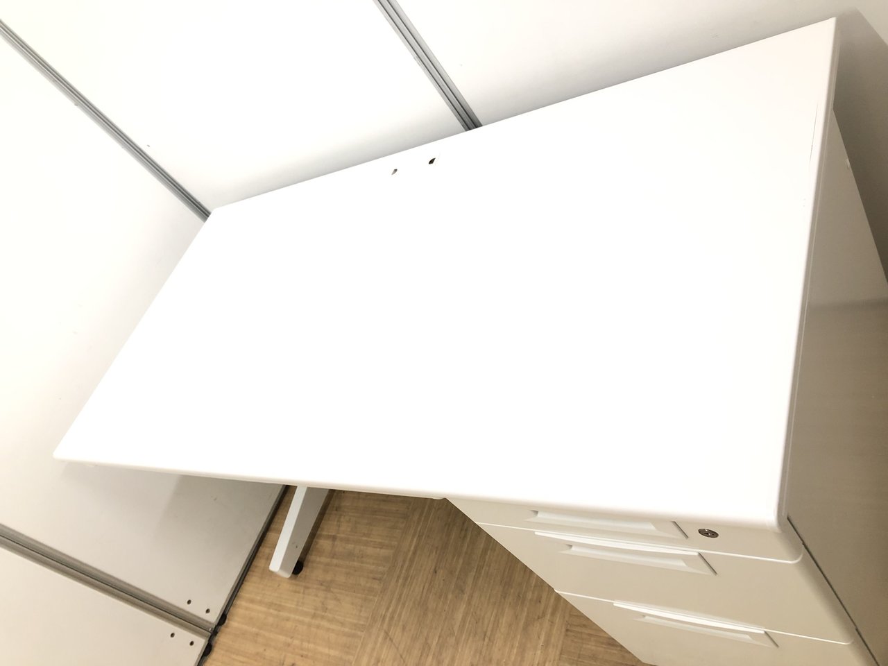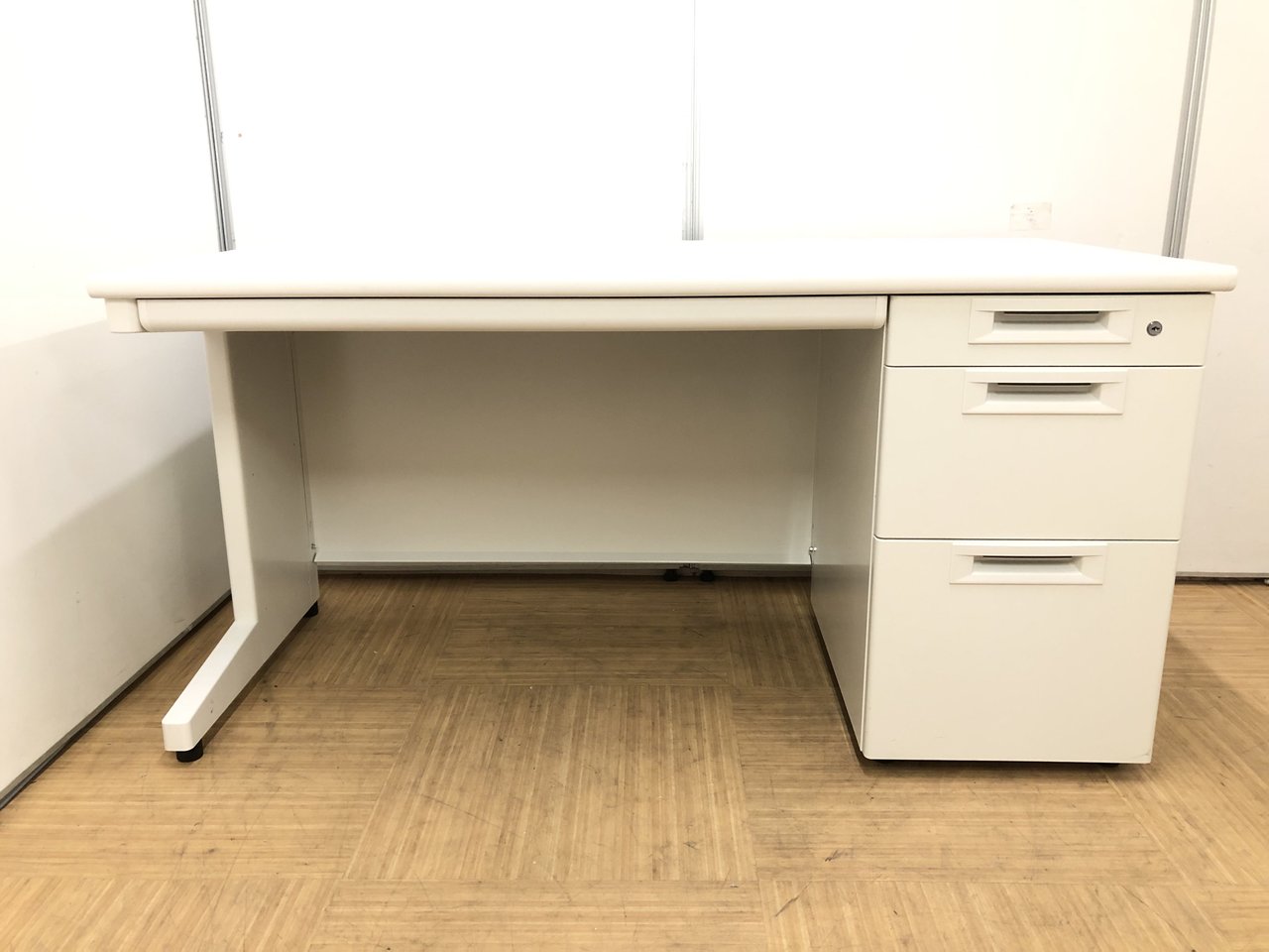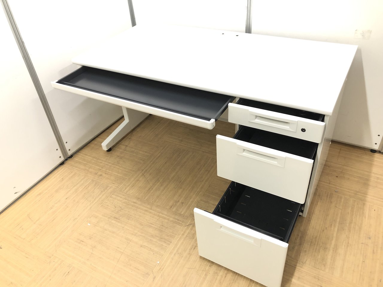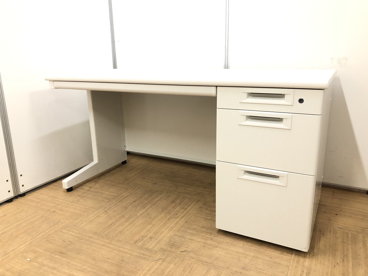 【モニター2台使用できます】人気のホワイトカラー片袖机【W1400で広々使えます】- 名古屋本店