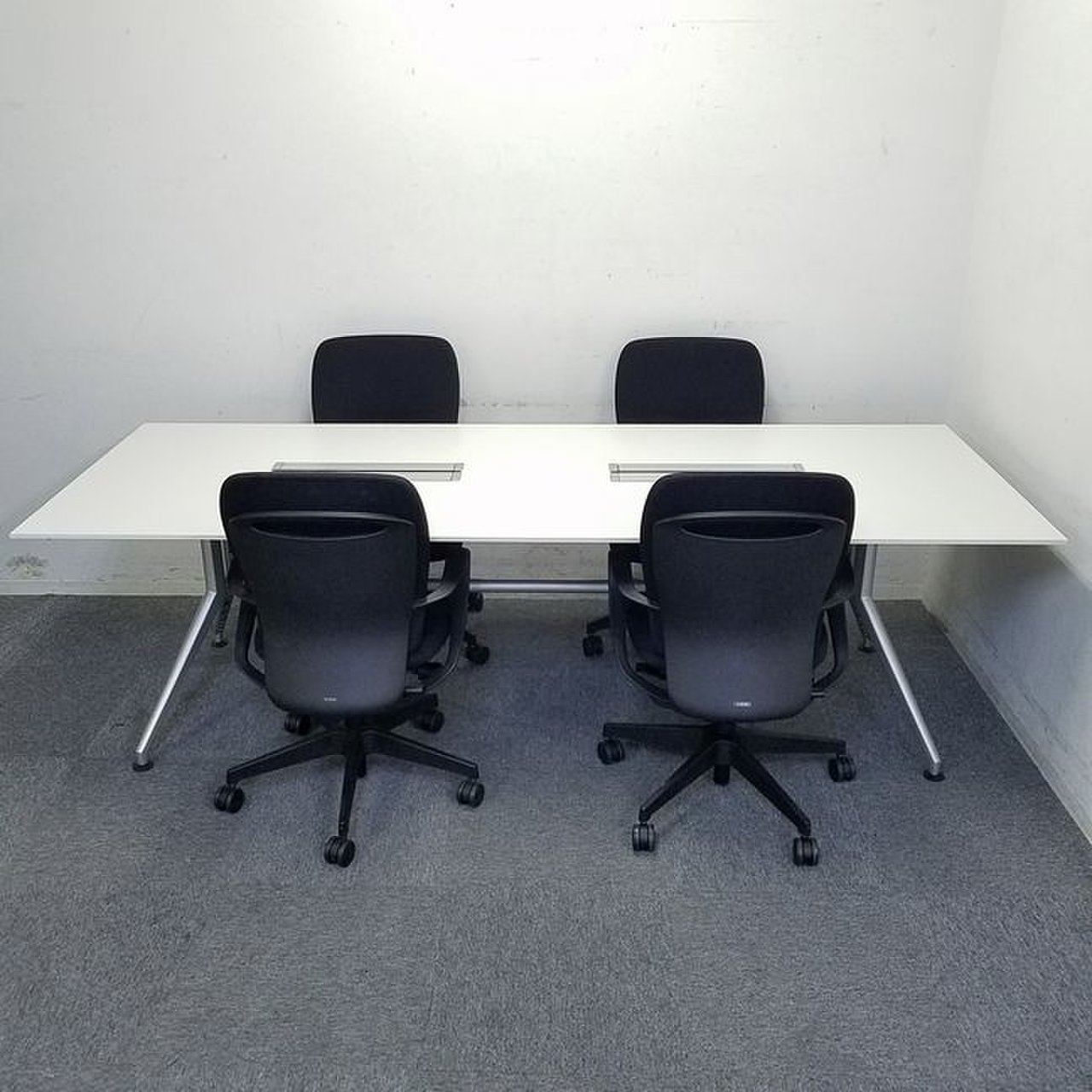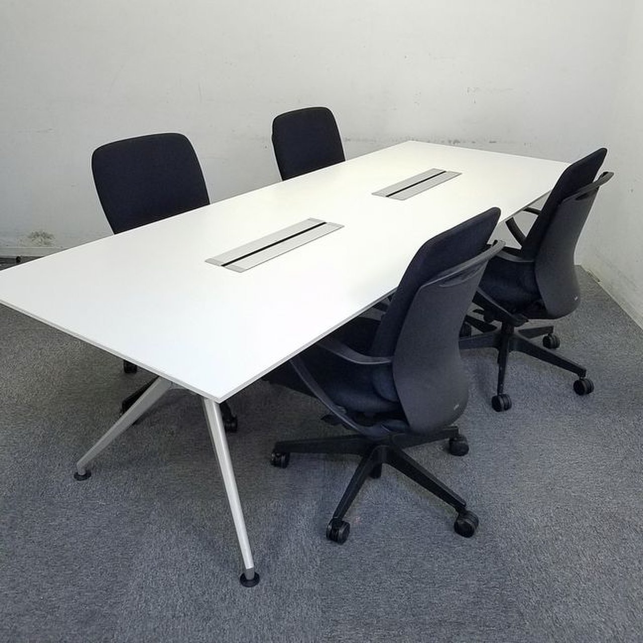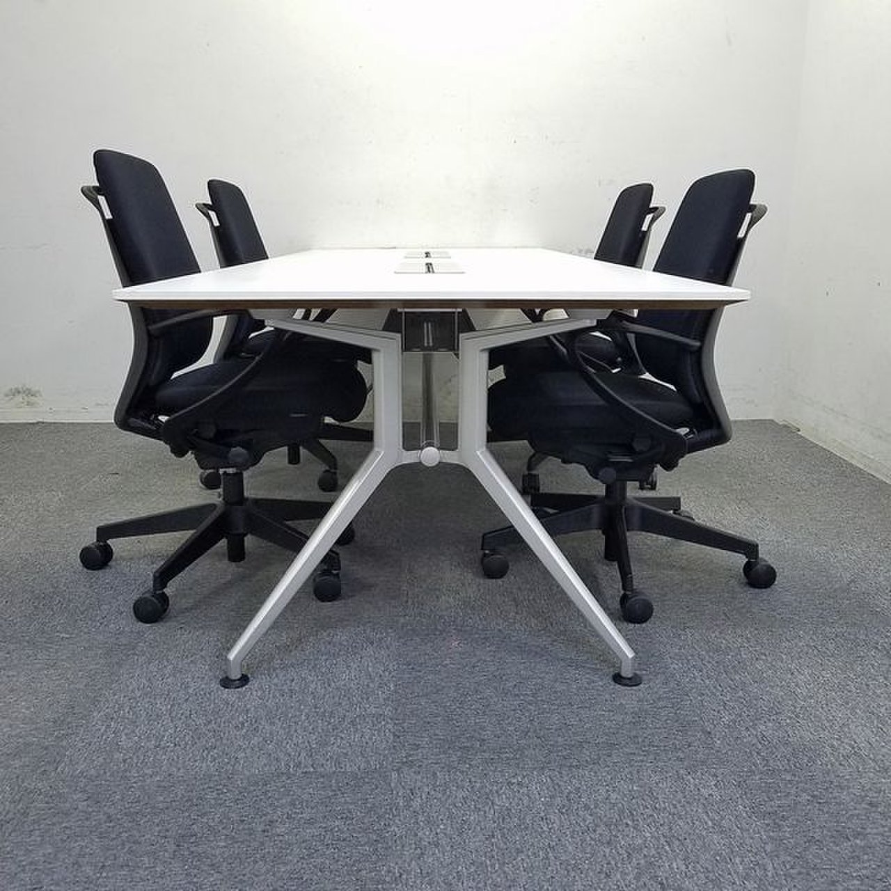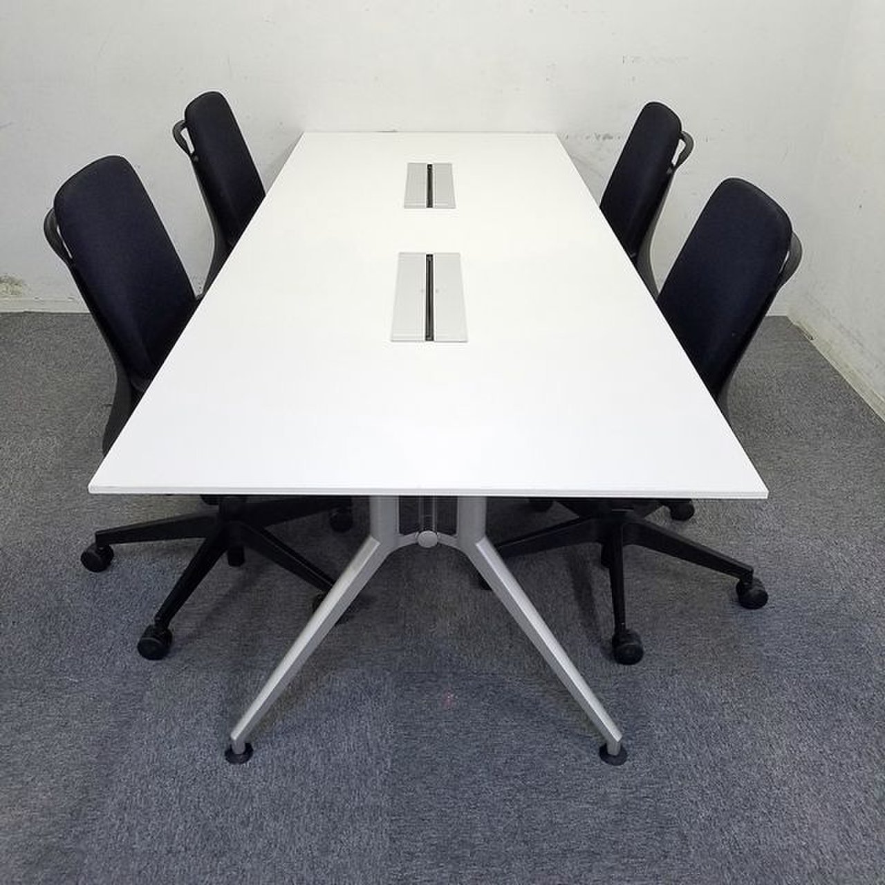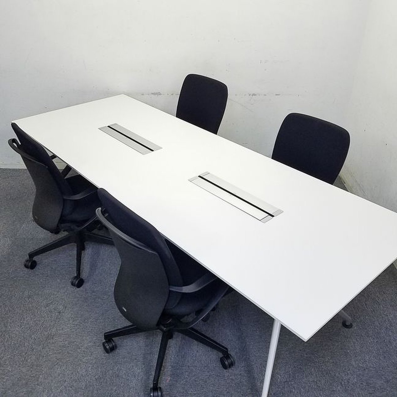 【セット商品】W2400|ホワイト天板のスタイリッシュな会議テーブルとブラックチェアのセット商品!【中古家具】- 大阪・堺店
