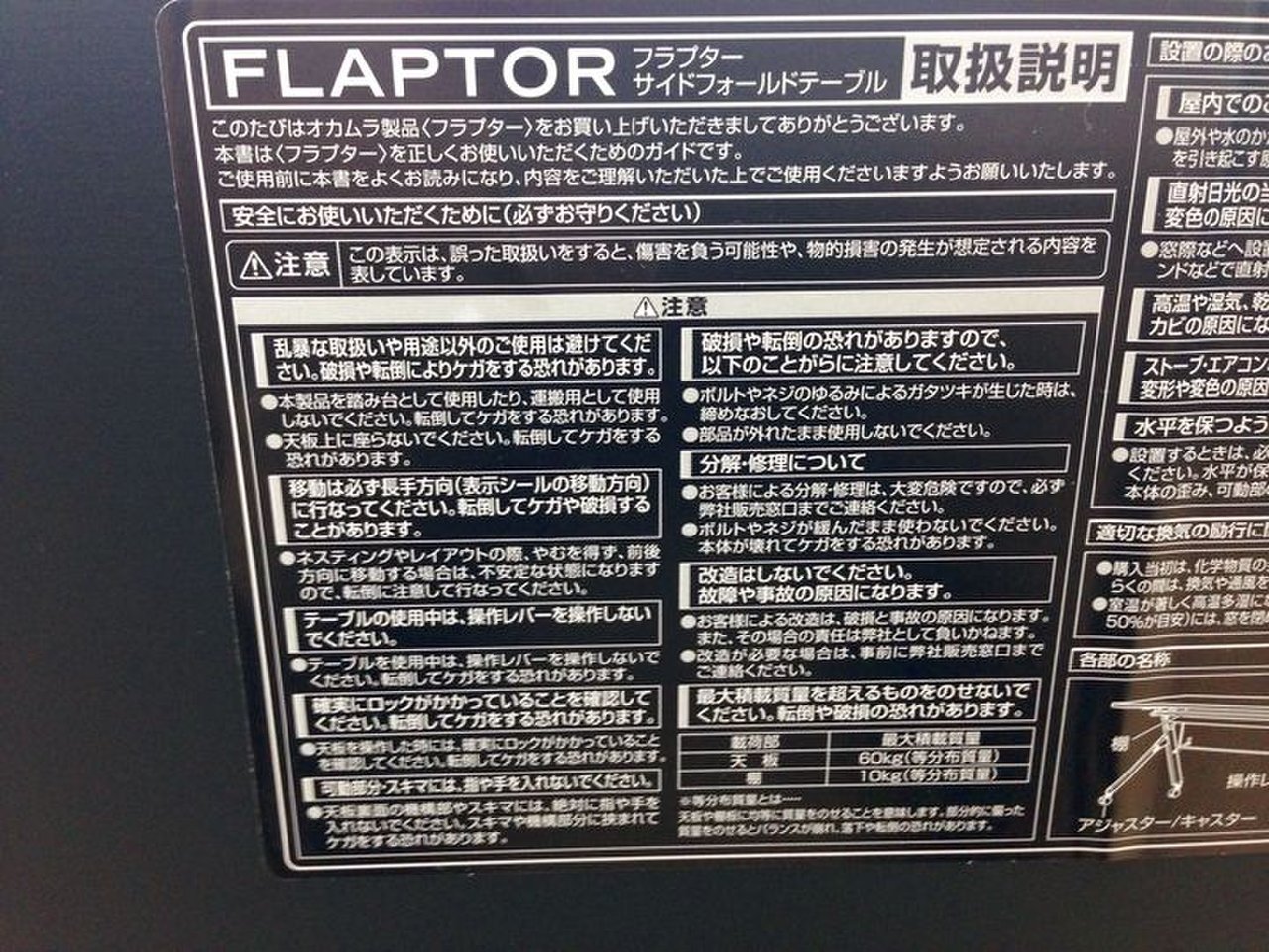- 一部不具合あり天板歪み、アジャスター無し、キャスター使用不可ようなそのテーブルの本来の効用を果たすための機能以外の一部が使用不可な状態。(例、キャスターロッ ク機能使用不可、棚板無し等がある。)
