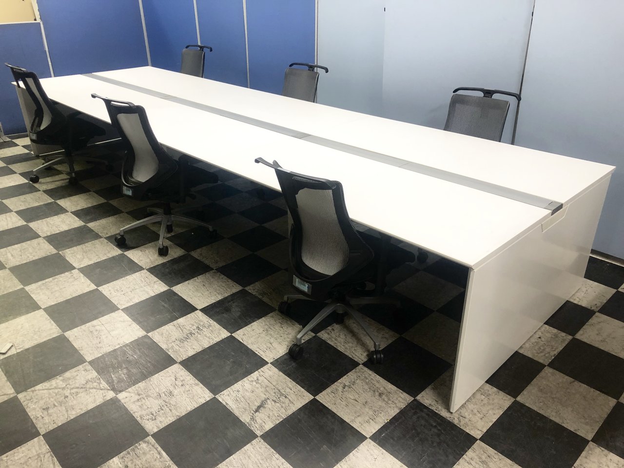 【見た目がおしゃれなフリーアドレスデスク】幅4800㎜ 奥行1400㎜ 高さ720㎜ オカムラ/プロユニットフリーウェイ/天板:ホワイト/脚:ホワイト 中古家具