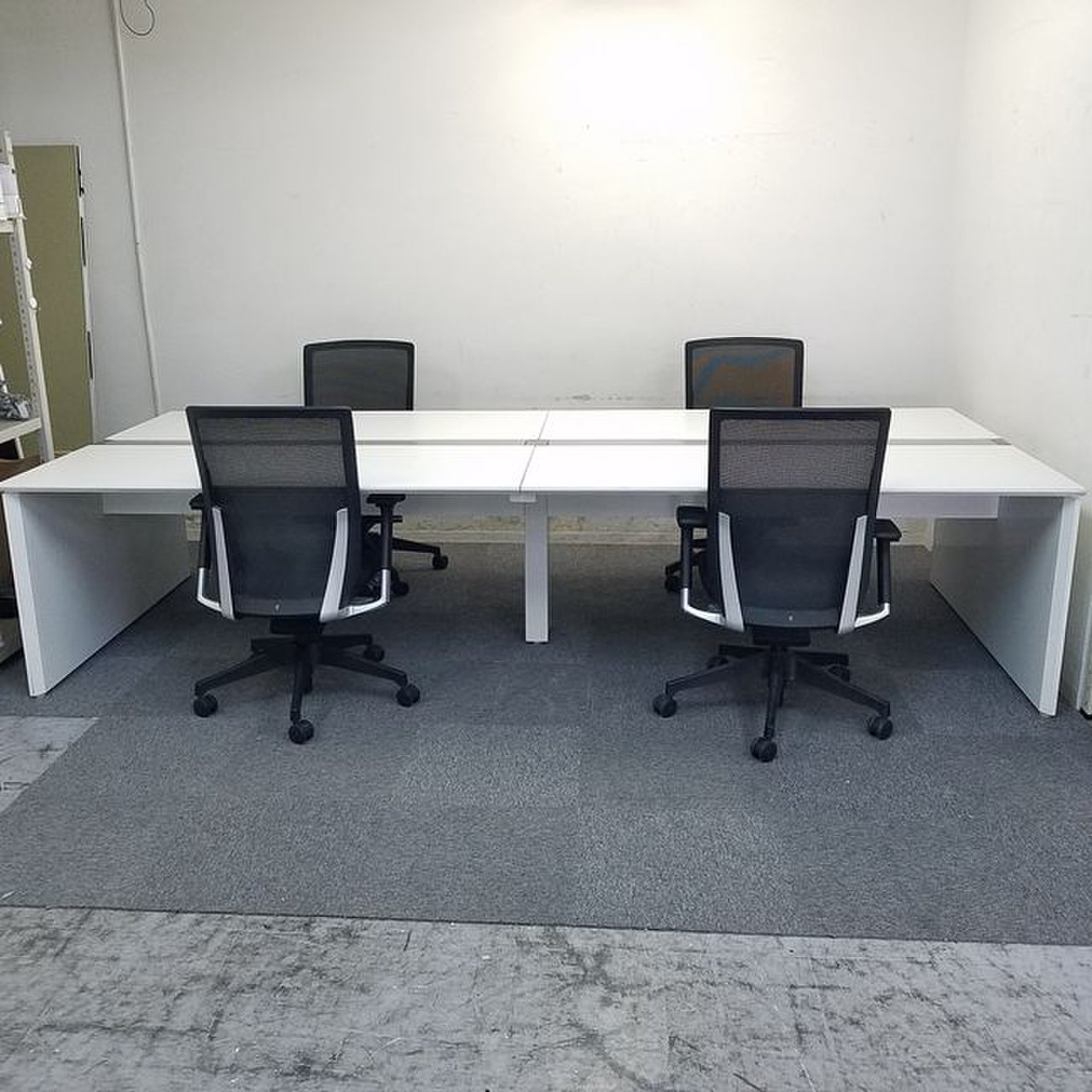 【見た目がおしゃれなフリーアドレスデスク】幅3200㎜ 奥行1400㎜ 高さ720㎜ オカムラ/プロユニットフリーウェイ/天板:ホワイト/脚:ホワイト 中古家具
