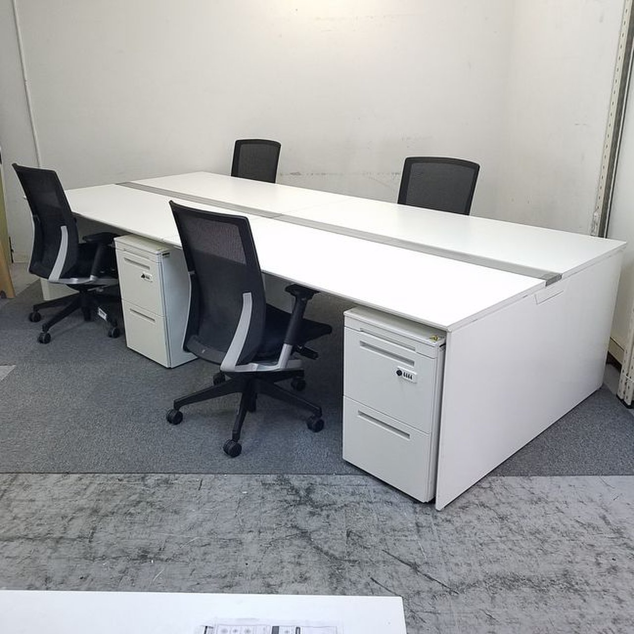 【見た目がおしゃれなフリーアドレスデスク】幅3200㎜ 奥行1400㎜ 高さ720㎜ オカムラ/プロユニットフリーウェイ/天板:ホワイト/脚:ホワイト 中古家具