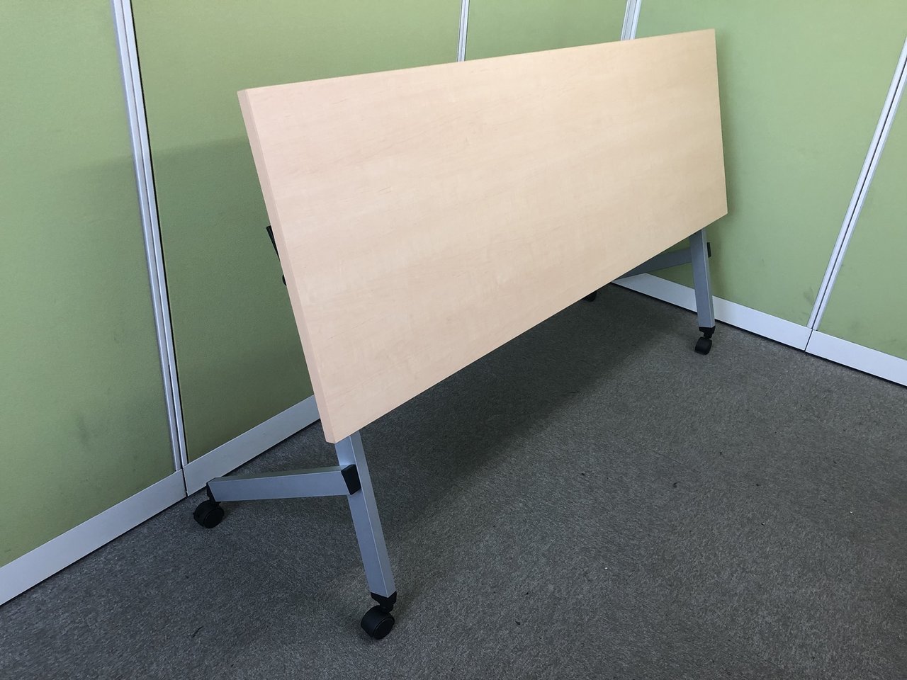 【新中古】天板から手を離さずに簡単に折りたたみ可能!スタックテーブル(長机/折りたたみ/会議用)θ- 全店共通商品