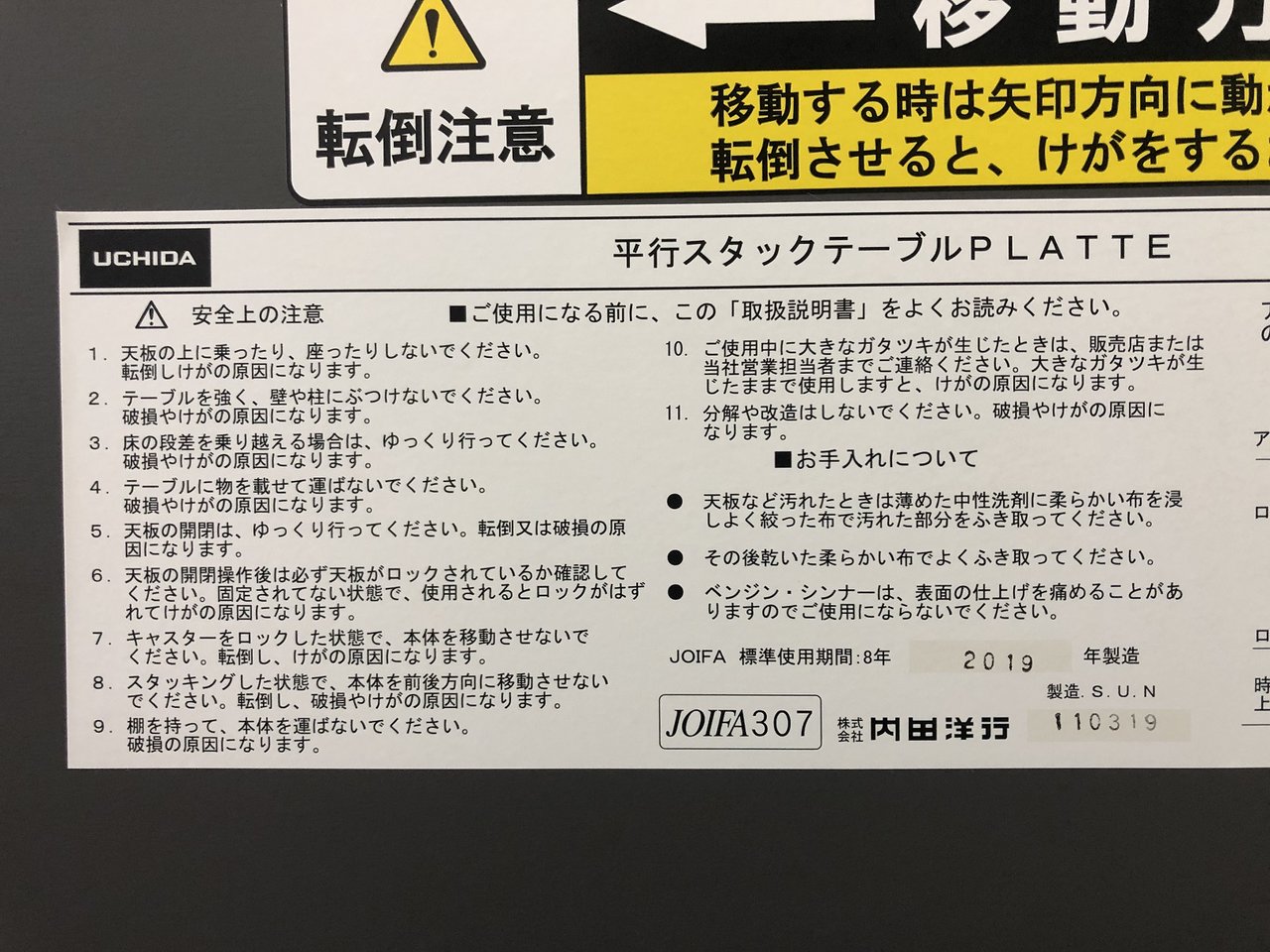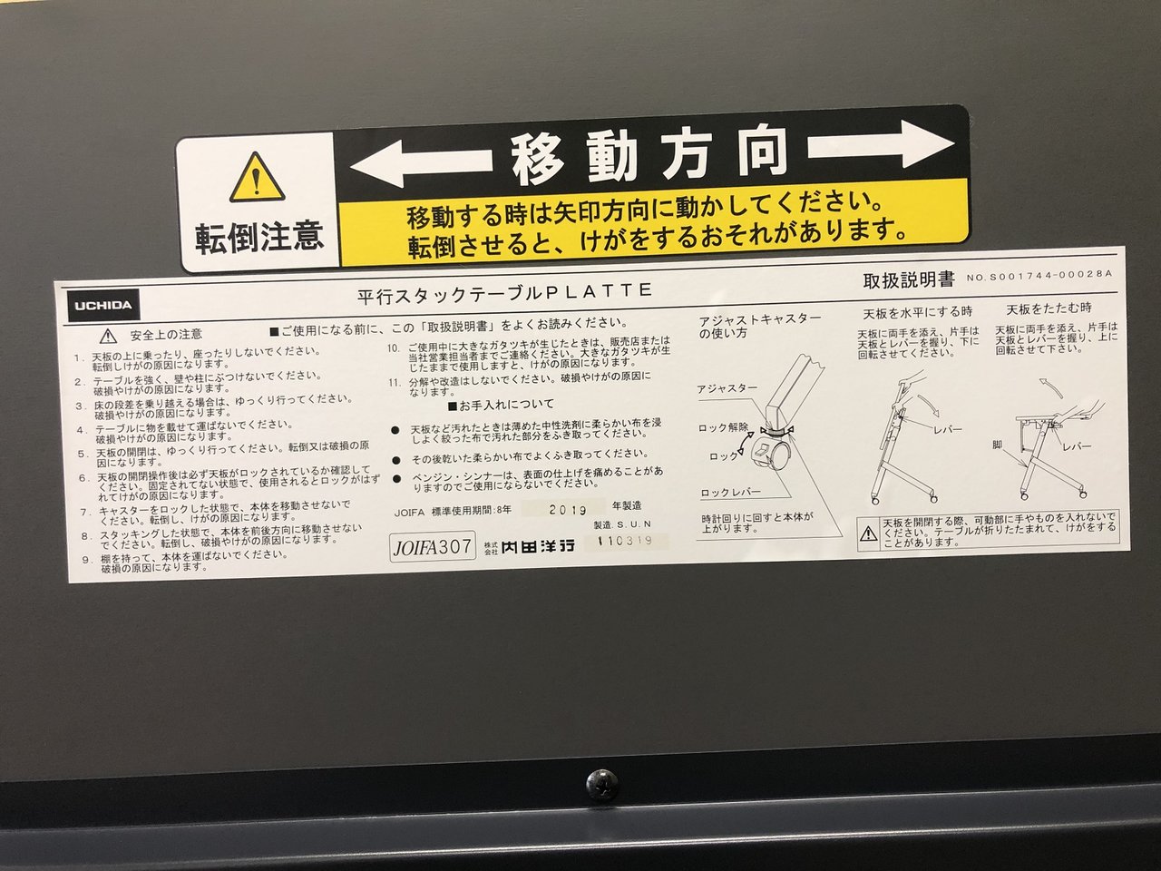 【新古品】 プラッテ ウチダ/UCHIDA スタックテーブル(長机/折りたたみ/会議用) 267065