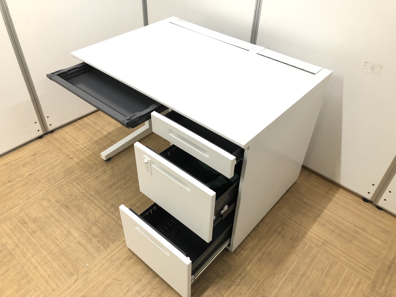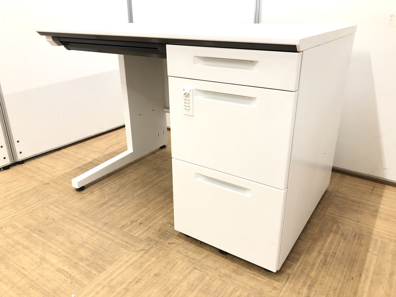 【省スペースのオフィスに最適!コンパクトサイズの片袖机!配線カバーも充実の高品質デスク!】■コクヨ(KOKUYO)製 アイエス(iS)シリーズ 片袖机 W1000×D700㎜ ■シリンダー錠 ■ホワイト