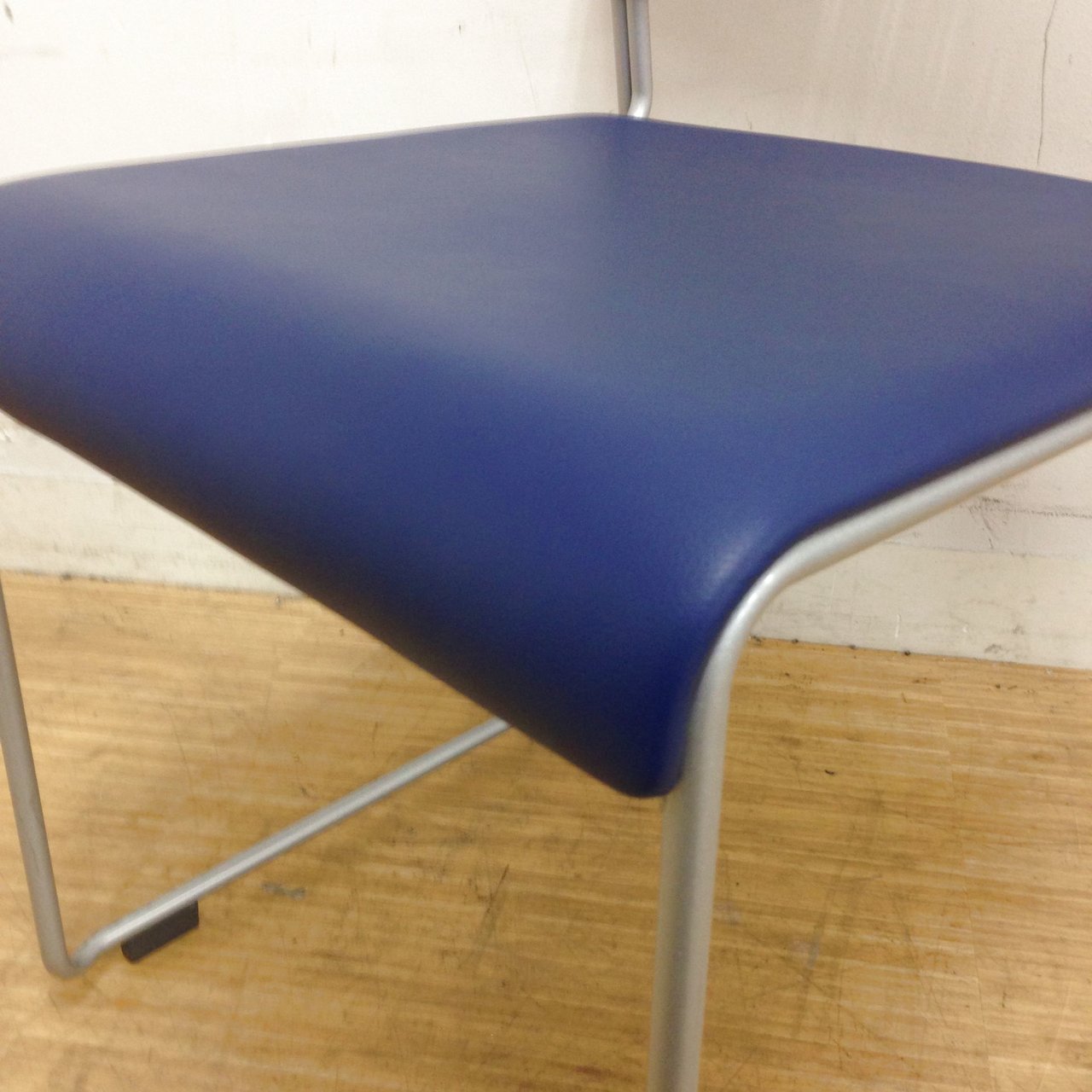 【16脚大量入荷!】ビニールレザーで汚れのふき取りなど楽々!! 重ねて収納可能 明るいブルー色- 名古屋千種店