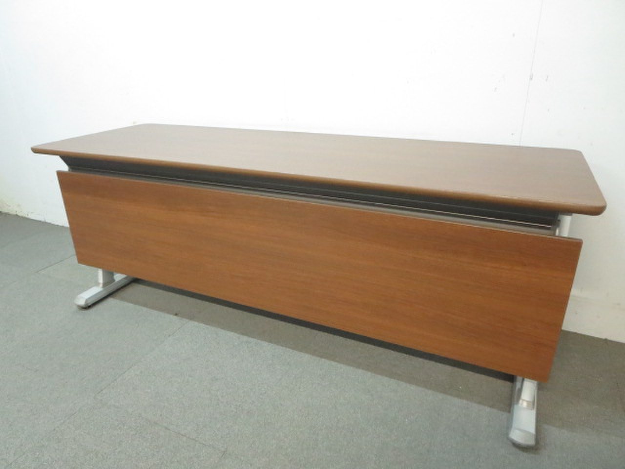 【今だけお買い得!】■コクヨ製 サイドスタックテーブル(W1800×D600mm)幕板パネル付 木目ブラウンカラー- 川崎店