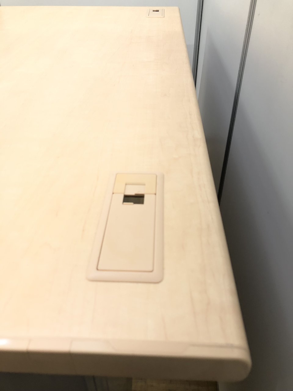 - 天板にコードホールが2ヵ所あり、レイアウト自在です。天板と幕版の間に30mmのすき間があり、対向配線も容易です。