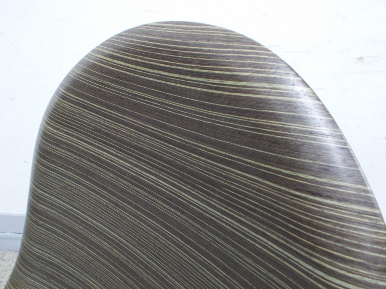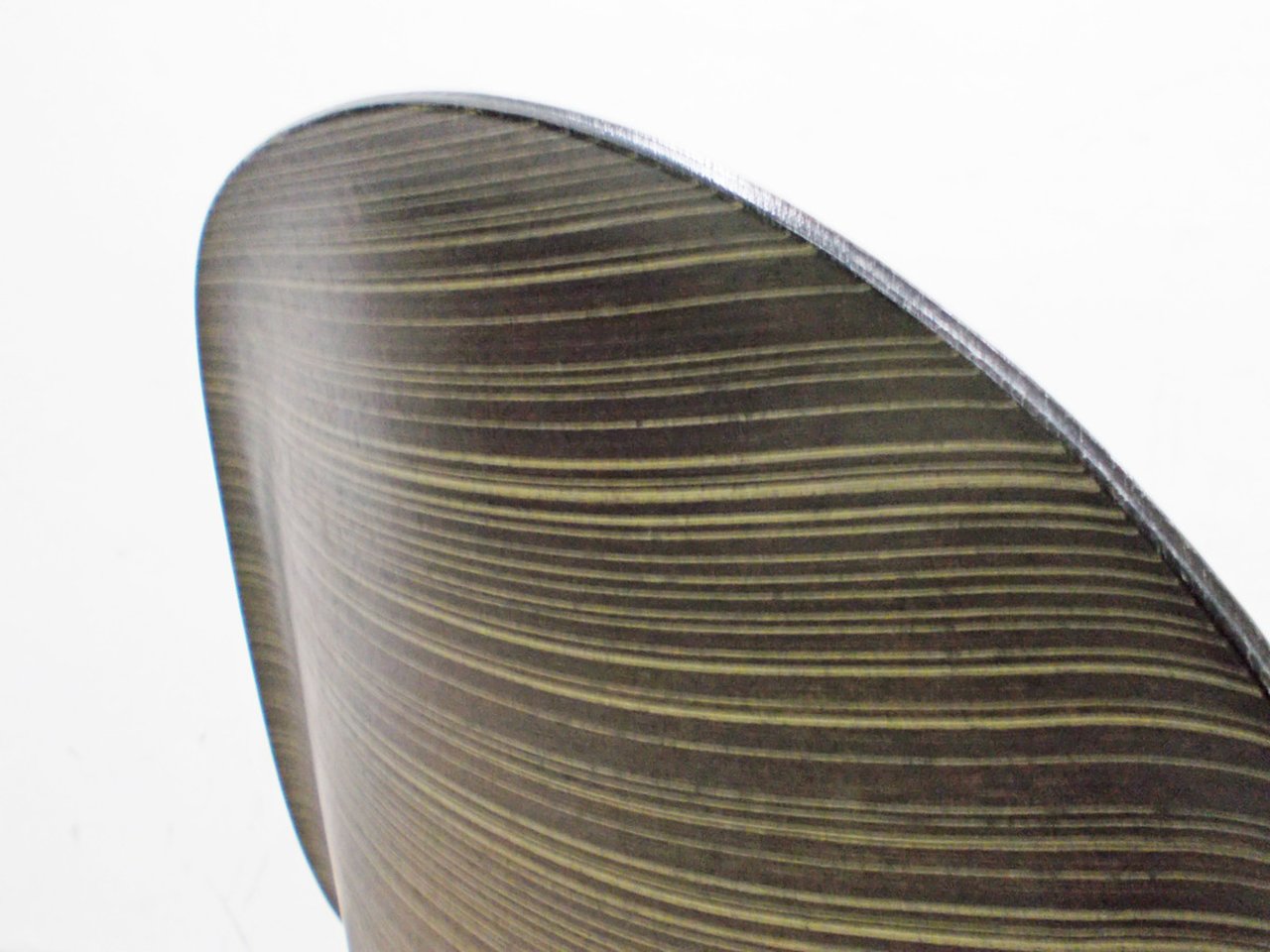 優雅なラインを描くユニークなシェル型の座面が特徴のこのチェアは、突板の美しい木目がナチュラルで温もり溢れる雰囲気を醸し出しています。