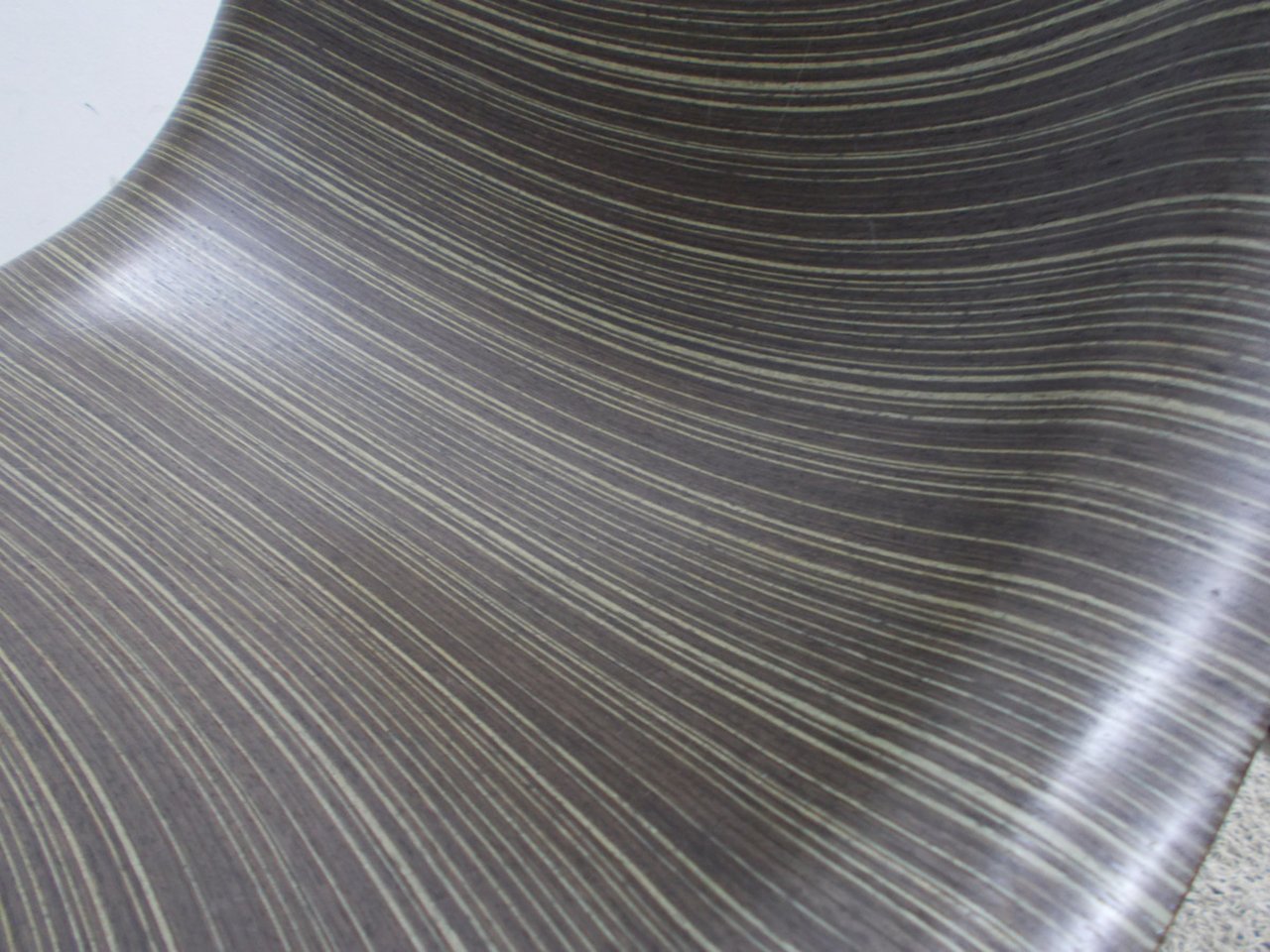 優雅なラインを描くユニークなシェル型の座面が特徴のこのチェアは、突板の美しい木目がナチュラルで温もり溢れる雰囲気を醸し出しています。